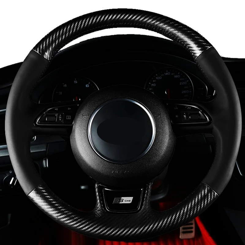 Чехол рулевого колеса автомобиля Черное ПУ углеродное волокно для A...