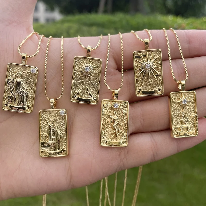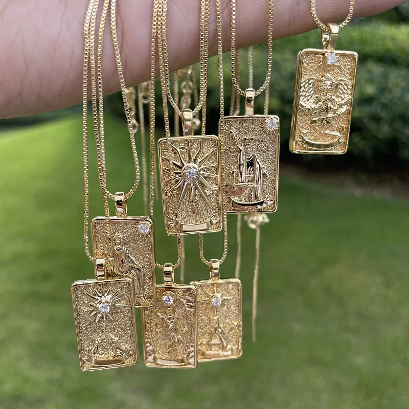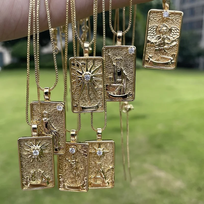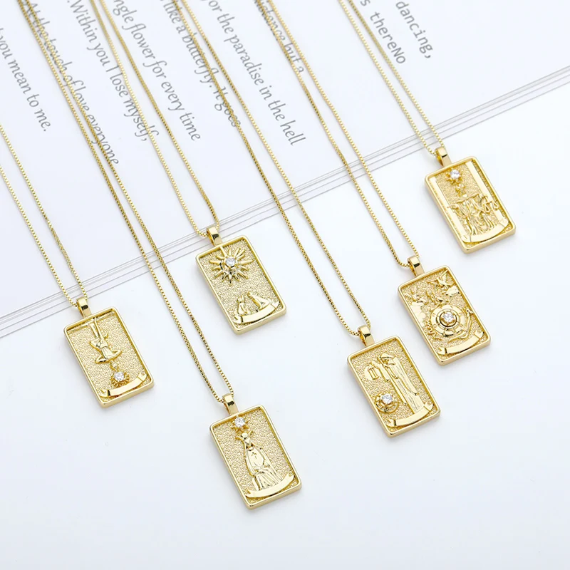 Винтажное ожерелье с картами Таро для женщин, мужчин, с символикой кабалы, квадратное ожерелье из циркония, панк, солнце и луна, подвеска украшения подарки