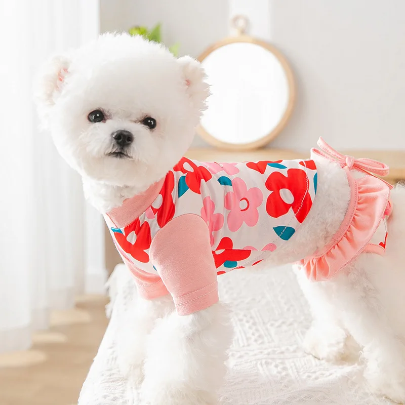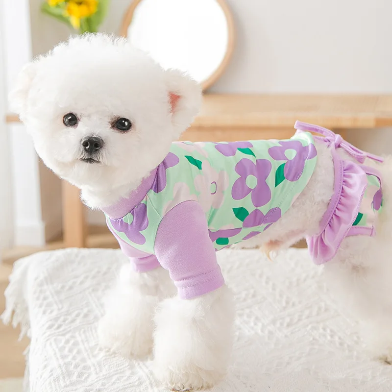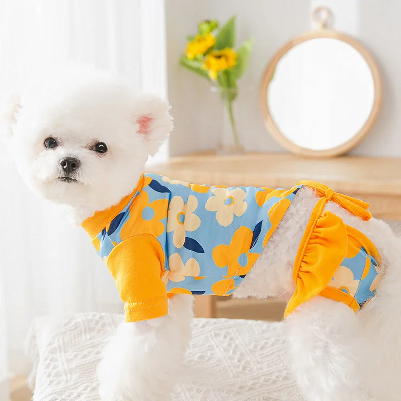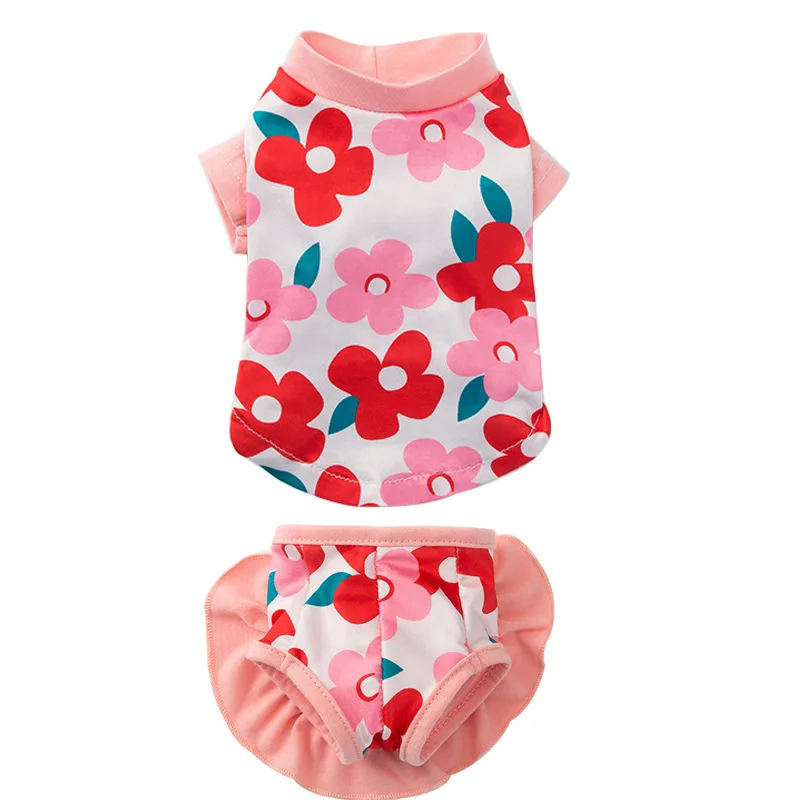 Комплект из 2 предметов; Летняя одежда с принтом в виде собак для девочек Купальник собаки костюм футболка с шортами для кошек, одежда для собак, одежда для собак жилетка, одежда для домашних животных собак, одежда для собак, для девочек