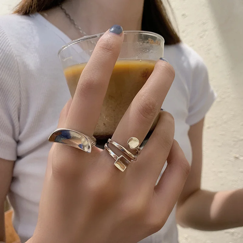 QMCOCO серебряный цвет Геометрическая глянцевая поверхность регулируемое кольцо простой геометрической текстуры в форме Луны трендовые Женские Ювелирные изделия Подарки