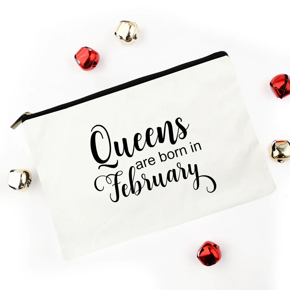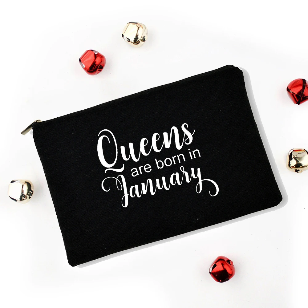 Queens рождаются в месяцах модные макияж Косметическая сумка парусина Harajuku дорожный органайзер для бижутерии мешок застежки-молнии, подарок на день рождения кошелек