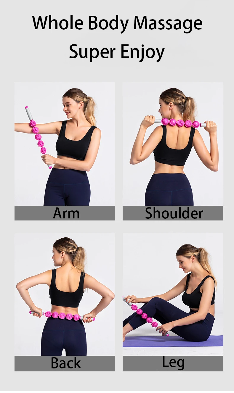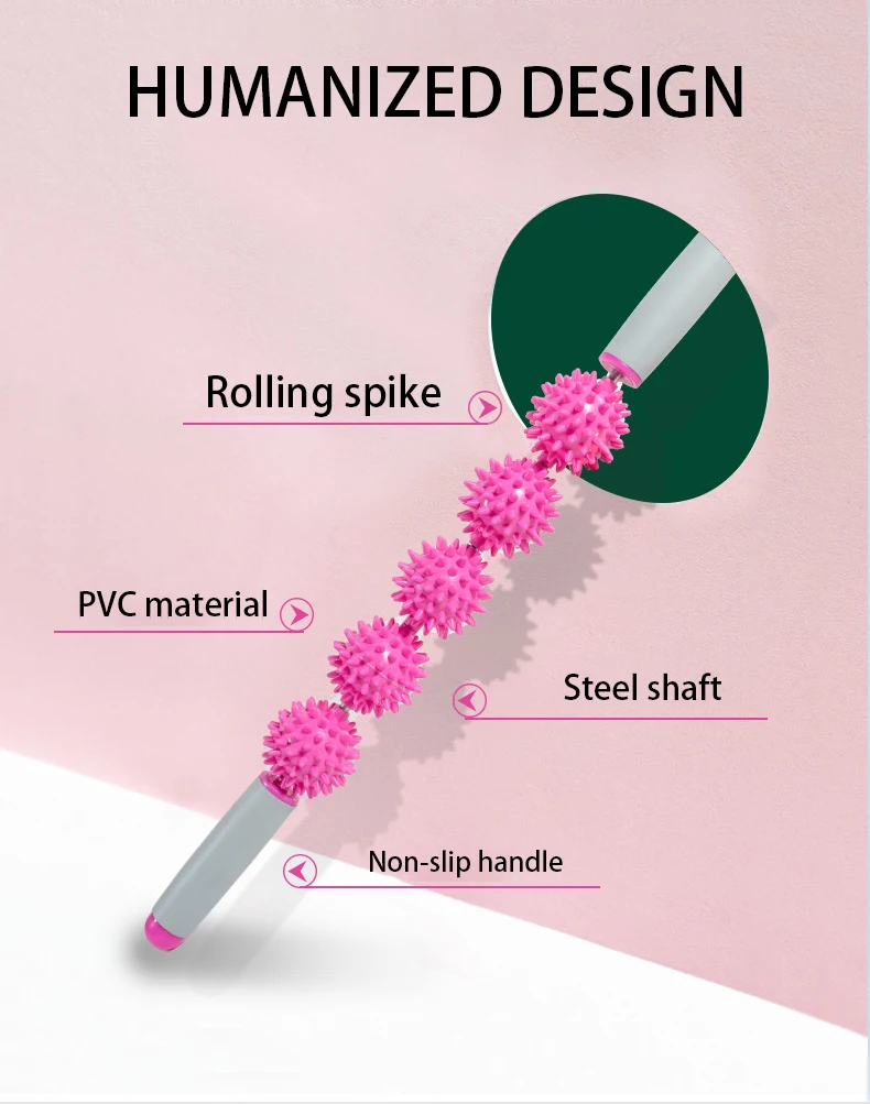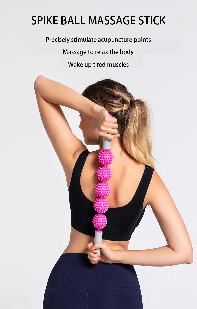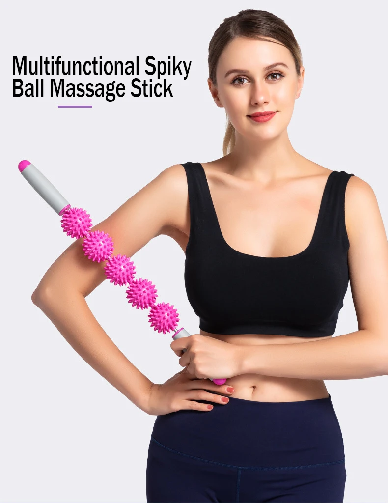 5 ПВХ-шариков-спицами, массажная палка для йоги, ролик для рук, спины, ног, инструмент для фитнеса, массажа, тренажерного зала, спорта, успокаивающий мышечный инструмент для облегчения боли
