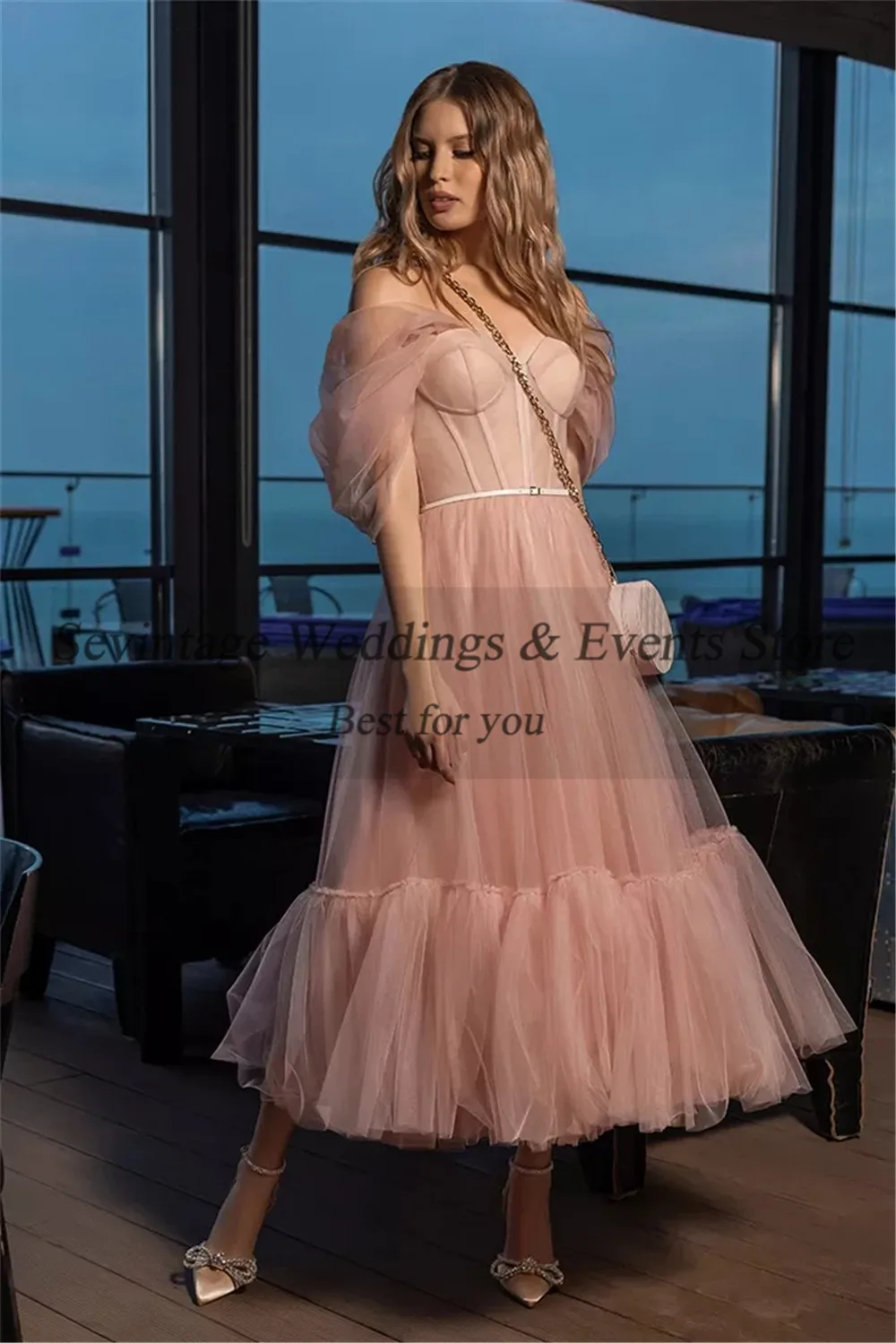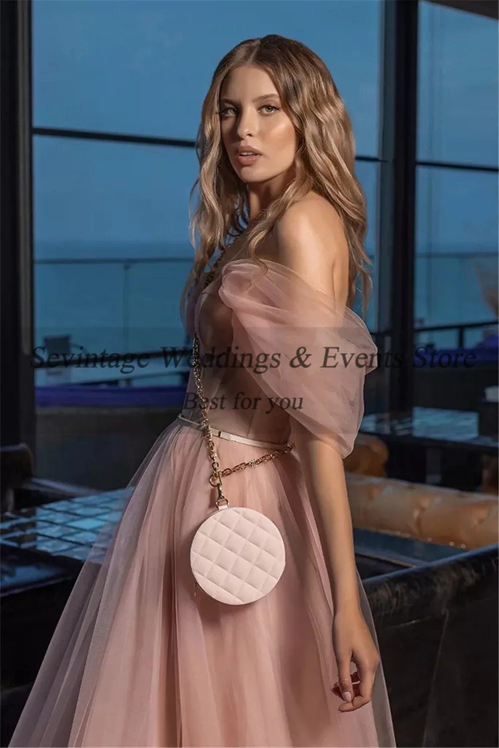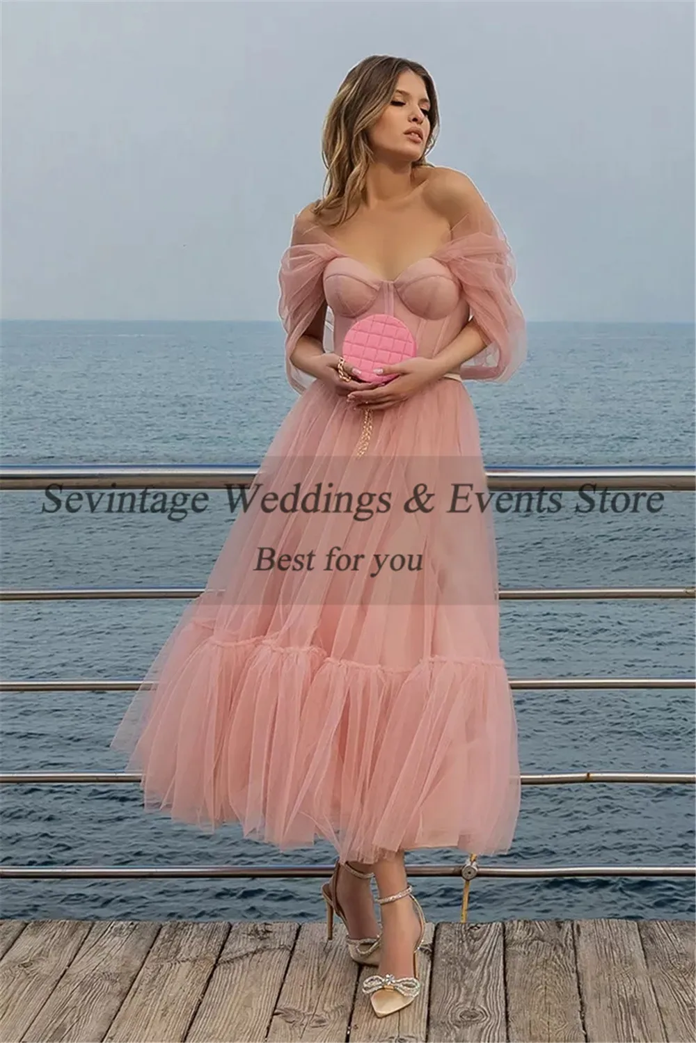 Розовое короткое платье Sevintage для выпускного вечера с открытыми плечами, милое многослойное Тюлевое вечернее платье трапециевидной формы длиной до колена, вечерние платья для девушек, 2021