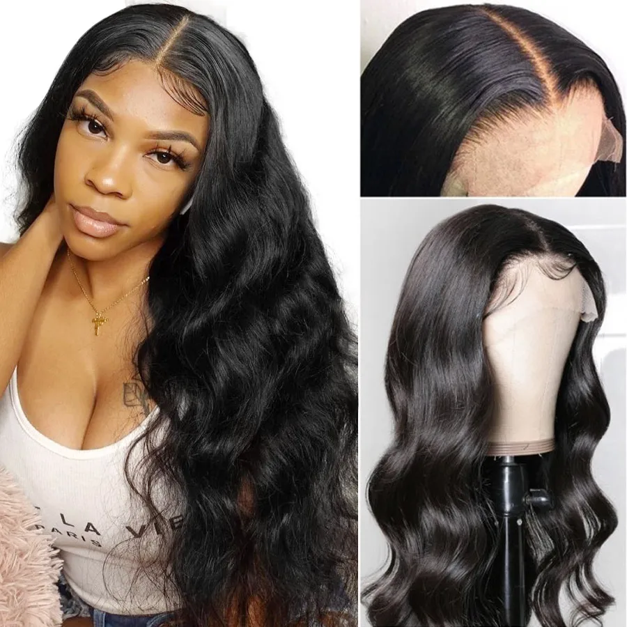 Дешевые объемная волна Синтетические волосы на кружеве парик прозра...