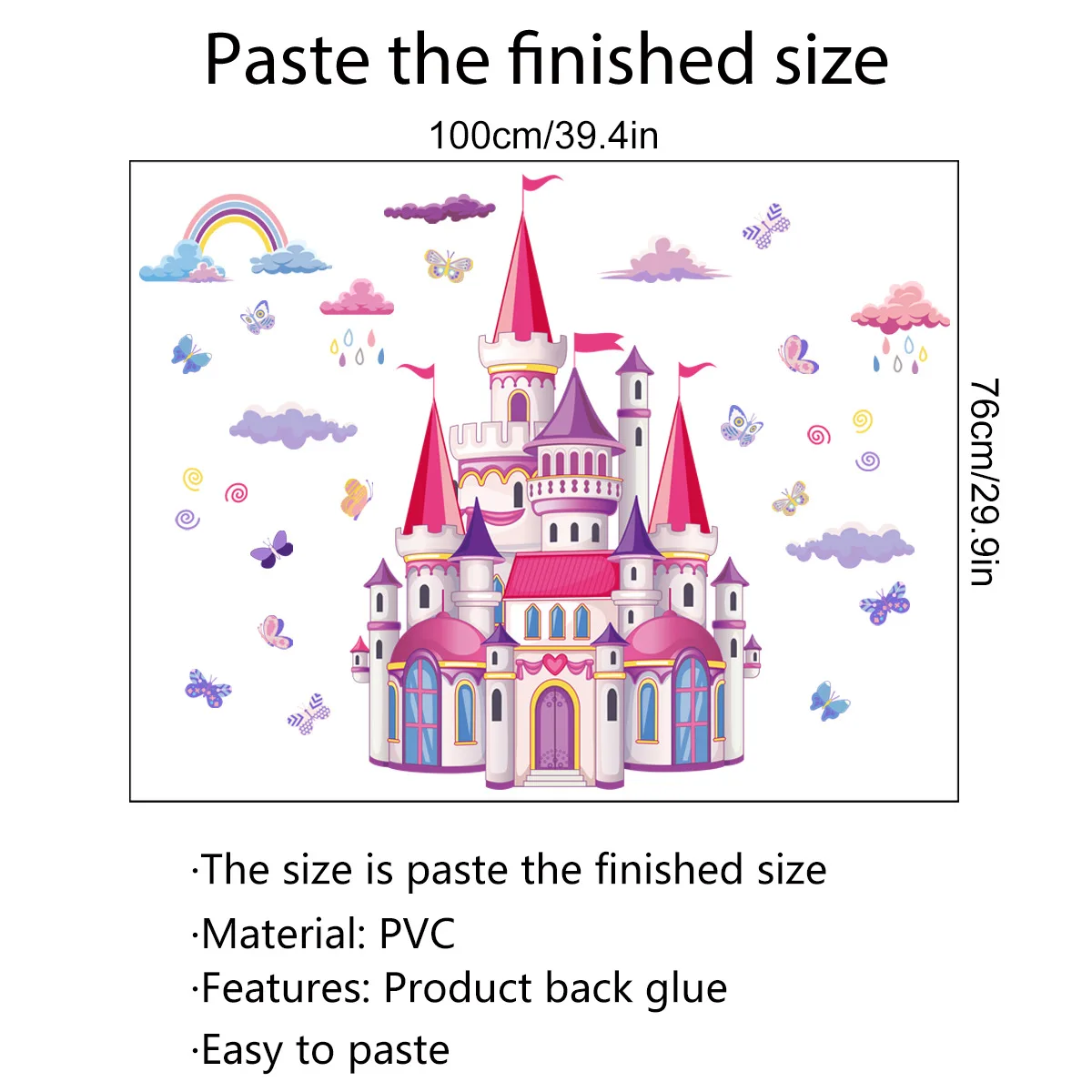 ПВХ мультяшный замок сказочные наклейки на стену для детской комнат...
