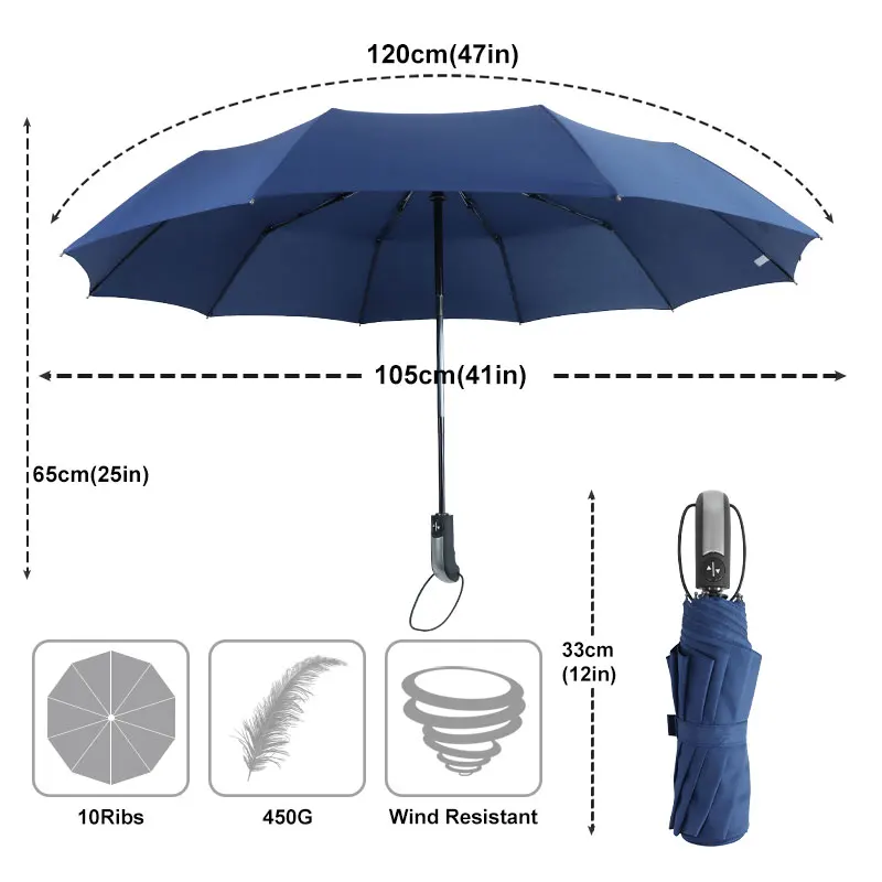 Зонт ветрозащитный, автоматический, 10 спиц, 3 складных