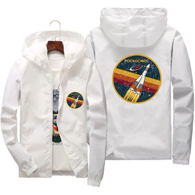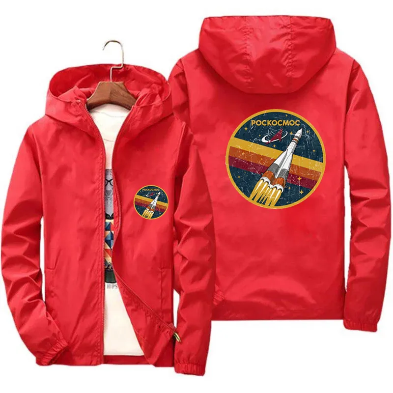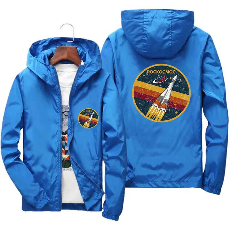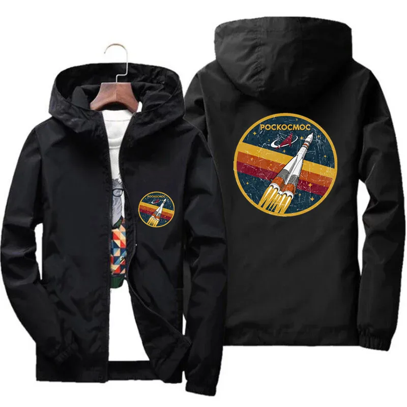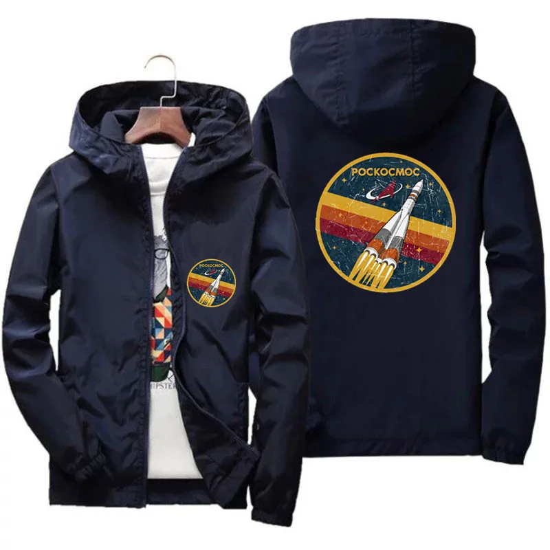 Для Мужчин's Курточка бомбер Роскосмос Винтаж эмблема РОССИИ СССР ветровка на молнии пальто размера плюс для защиты от солнца куртка Спорт на открытом воздухе 7XL