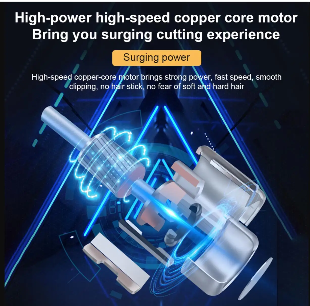Высокая и стабильная мощность, острая режущая головка, мощная режущая способность, равномерное захват волос и стрижка волос, быстрая и экономичная функция, а также контроль уровня шума очень мал, даже малыш не проснется