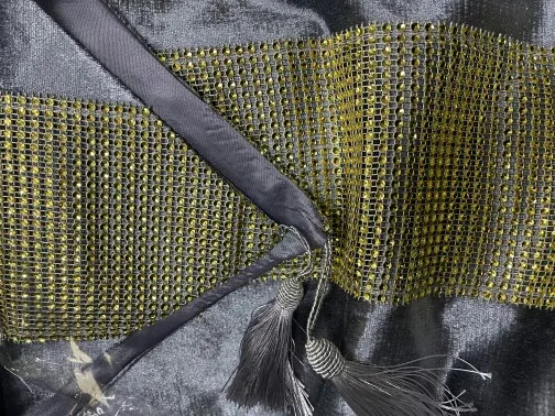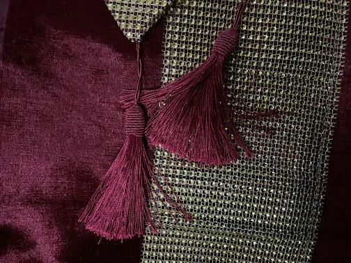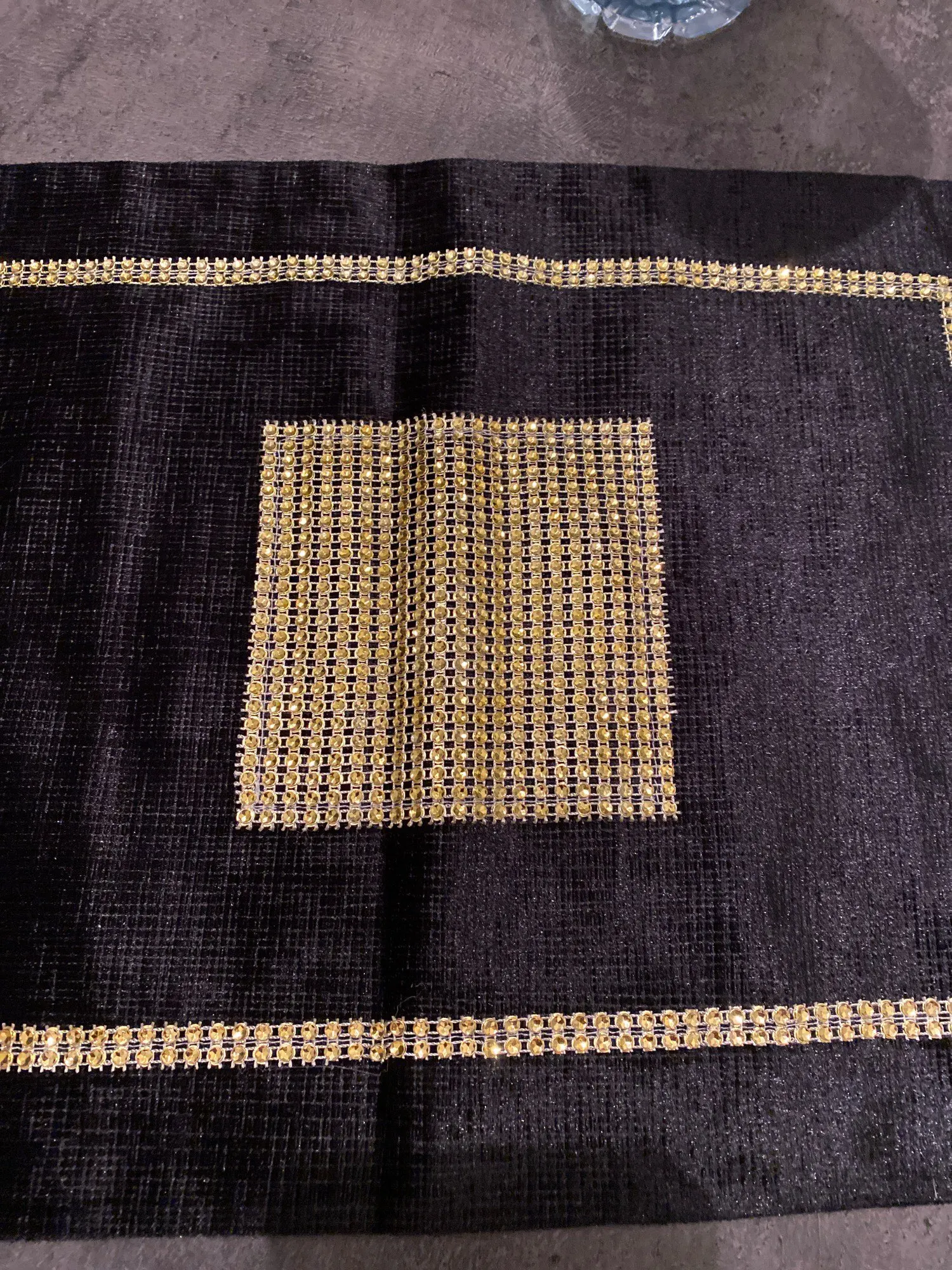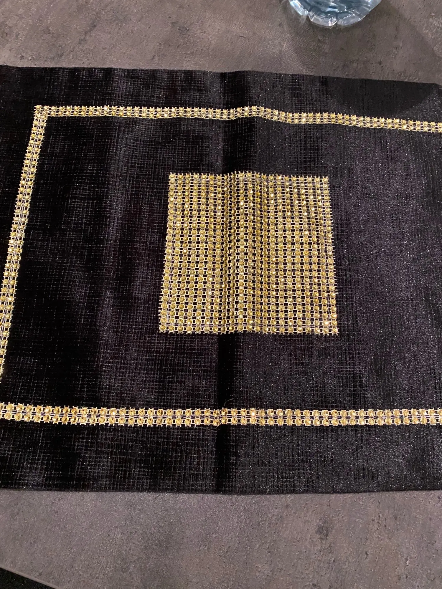 Отличная дорожка на стол. Нарядная из за золоченой полосы. Сам материал похож на плюш . Смотрится очень красиво. Советую к покупке.