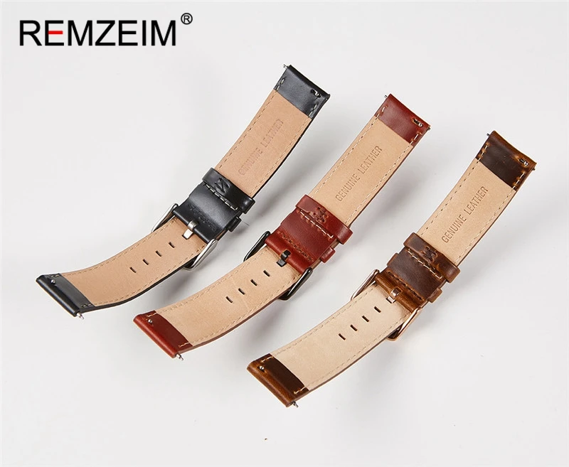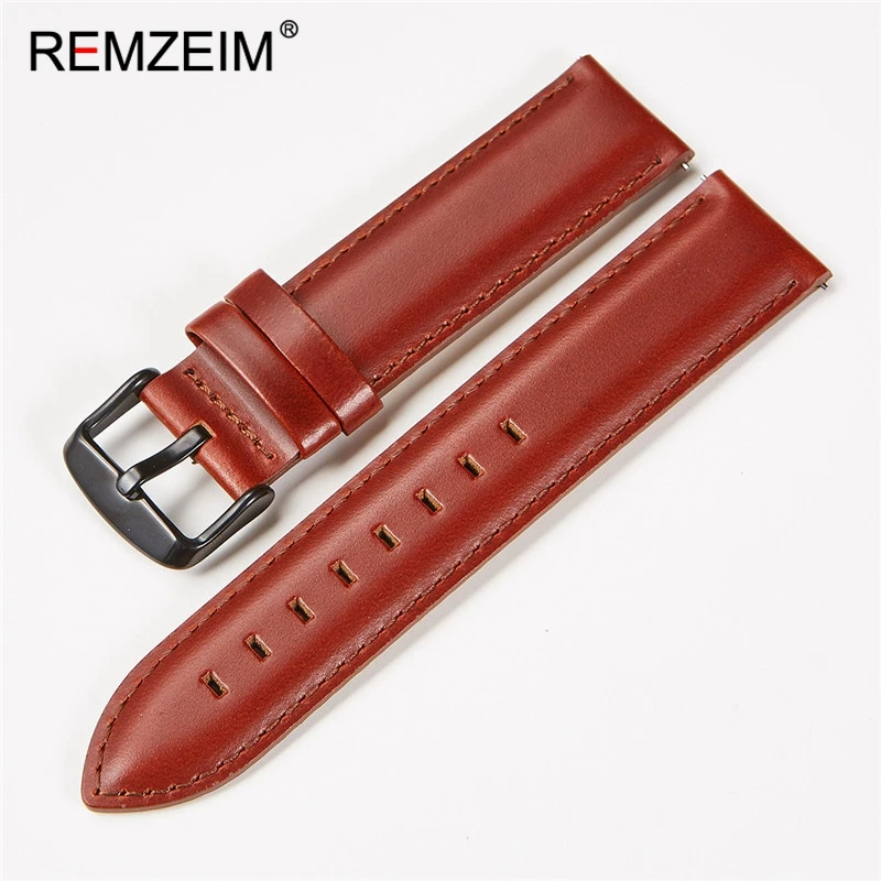 Ремешок кожаный REMZEIM для мужских и женских часов, сменный быстросъемный браслет ручной работы, Красный Коричневый Черный, Размер 18 мм 20 мм 22 мм