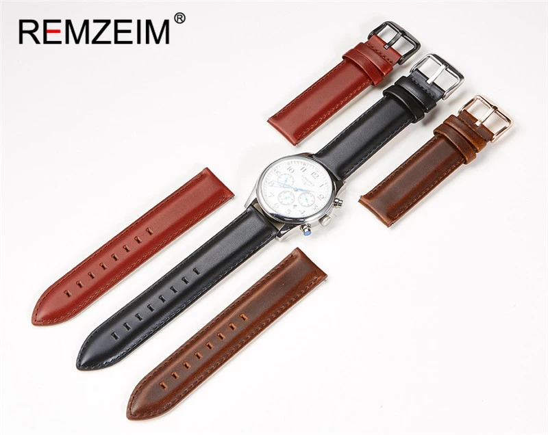 Ремешок для часов REMZEIM из натуральной кожи, браслет со стальной ...
