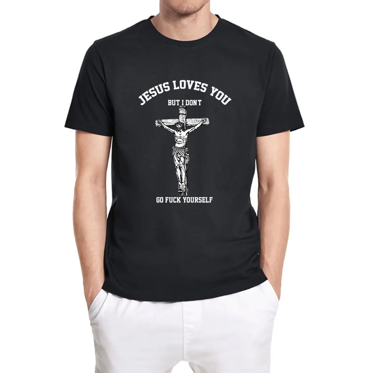 Футболка унисекс с надписью «Jesus Loves You But I Don't Fvck Yourself», винтажная Повседневная летняя мужская футболка с короткими рукавами, футболки Harajuku