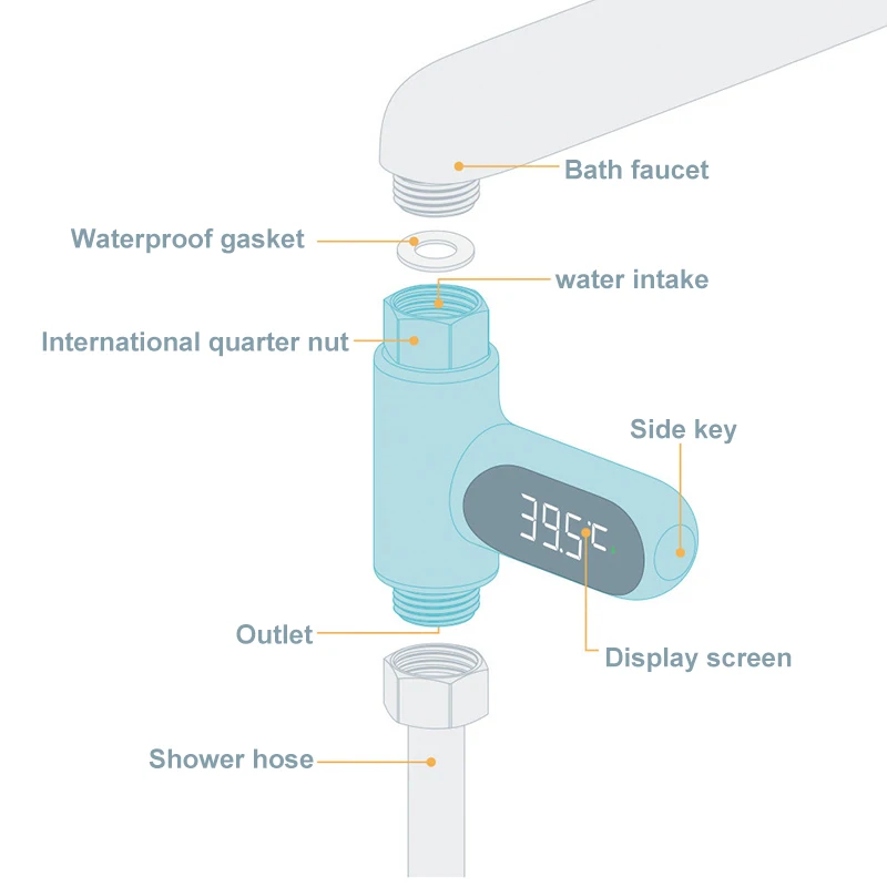 Возьмите первое поколение, например: 1 термометр для душа 1 Водонепроницаемая прокладка 1 буклет пользователя
