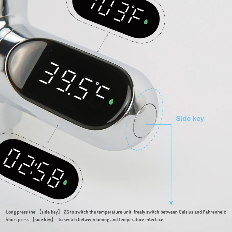 1. Короткое нажатие [Боковая кнопка] для переключения между временем и температурным интерфейсом 2. Нажмите и удерживайте [боковую кнопку] 2s, чтобы переключить единицу измерения температуры, свободно переключаться между градусами Цельсия и Фаренгейта; 3. Диапазон времени: ≤ 99 часов 59 минут