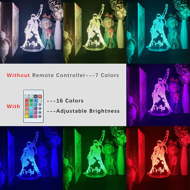 Ночник Queen Freddie Mercury 3D, Bluetooth-динамик, украшение для спальни, прикроватный столик, Книжная лампа, светодиодный светильник для фанатов, креативный подарок