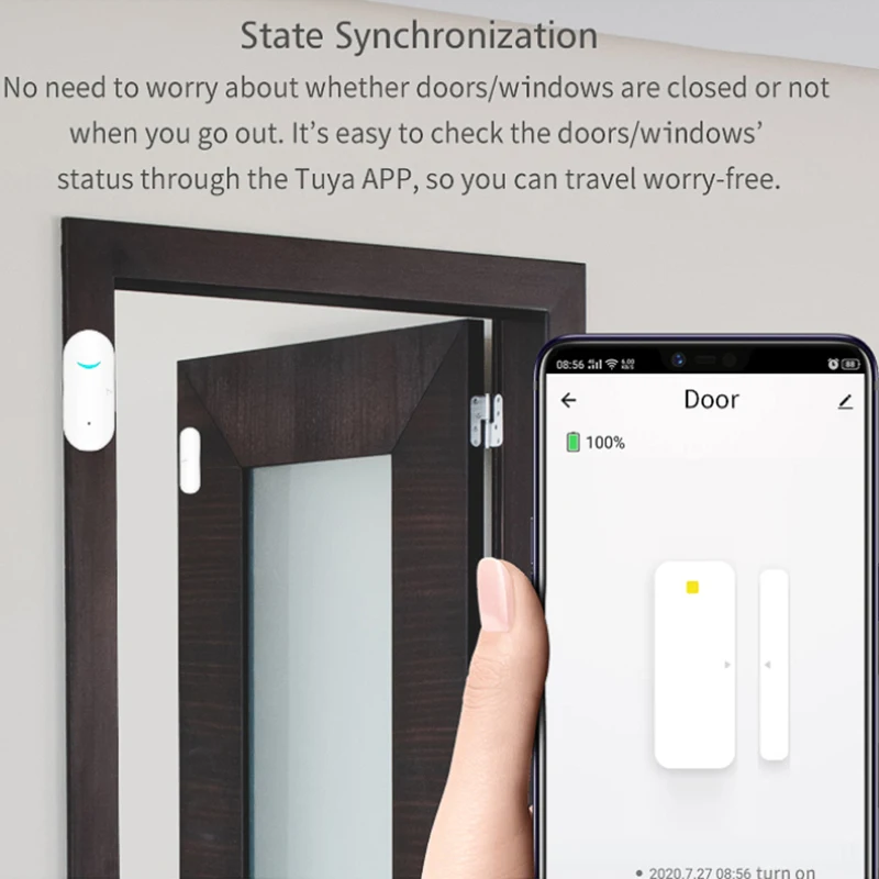 Никаких сложных инструментов для установки не требуется. Датчик может быть установлен с двухсторонней клейкой лентой или винтами (в комплекте) в несколько шагов, И загрузите приложение «tuya» или «Smart Life» из магазина GooglePlay или app Store, чтобы добавить устройство для обнаружения состояния вашей двери/окна.