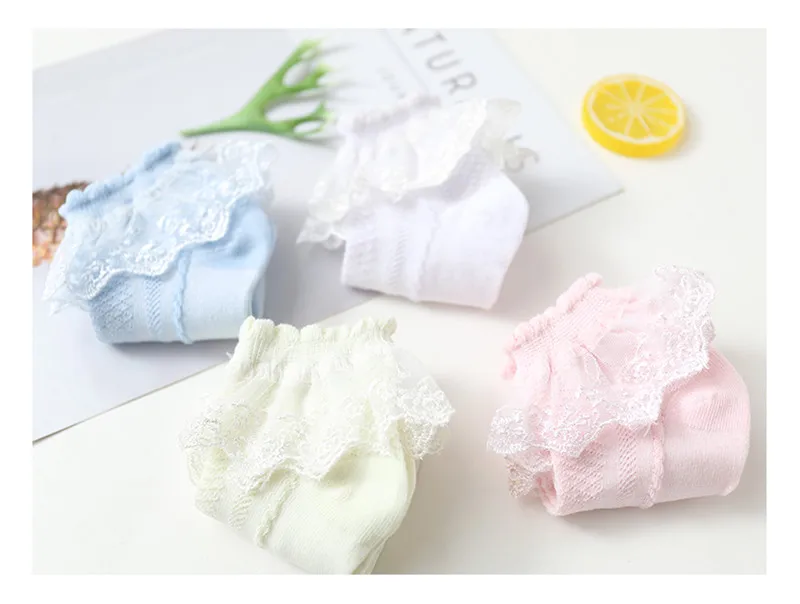 Детские хлопковые носки, белые, розовые кружевные носки для девочек...