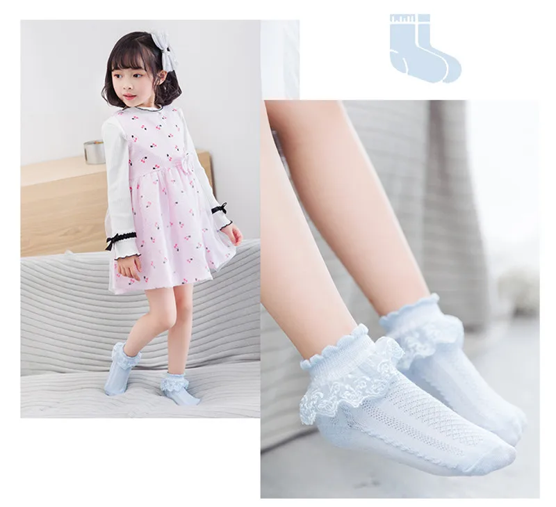 Дышащие хлопковые кружевные сетчатые носки с оборками для принцесс ...