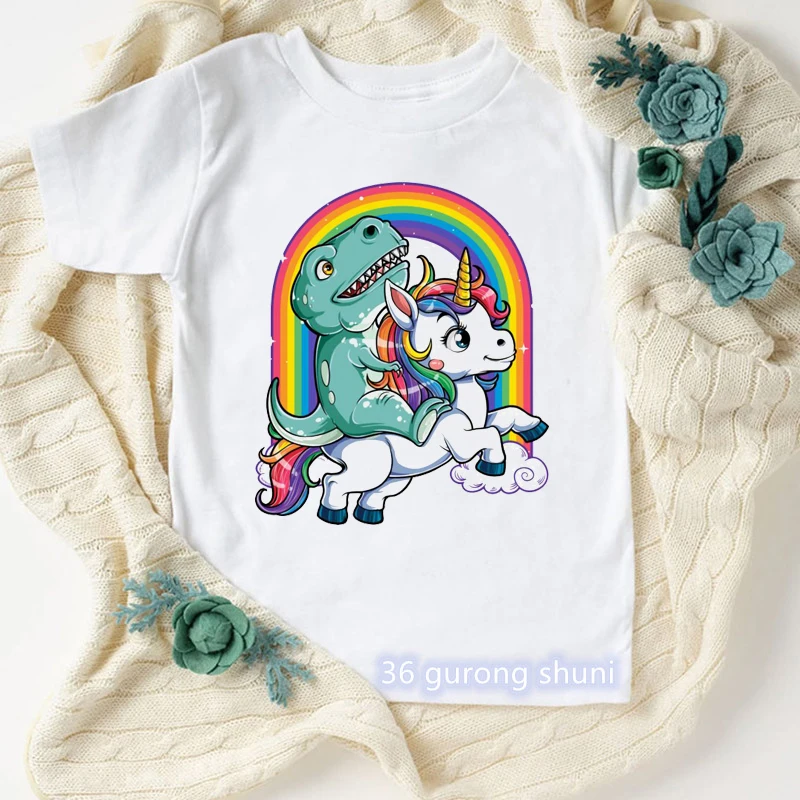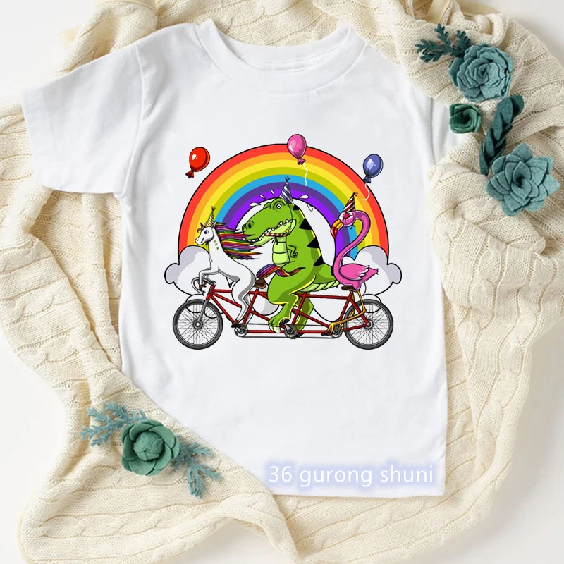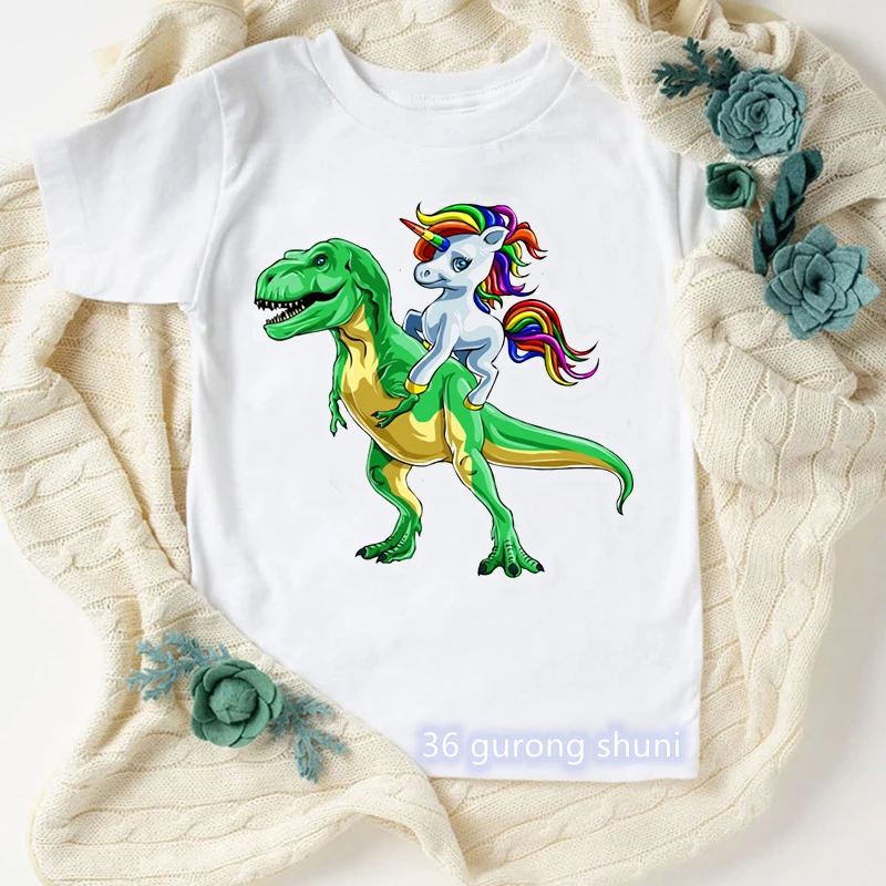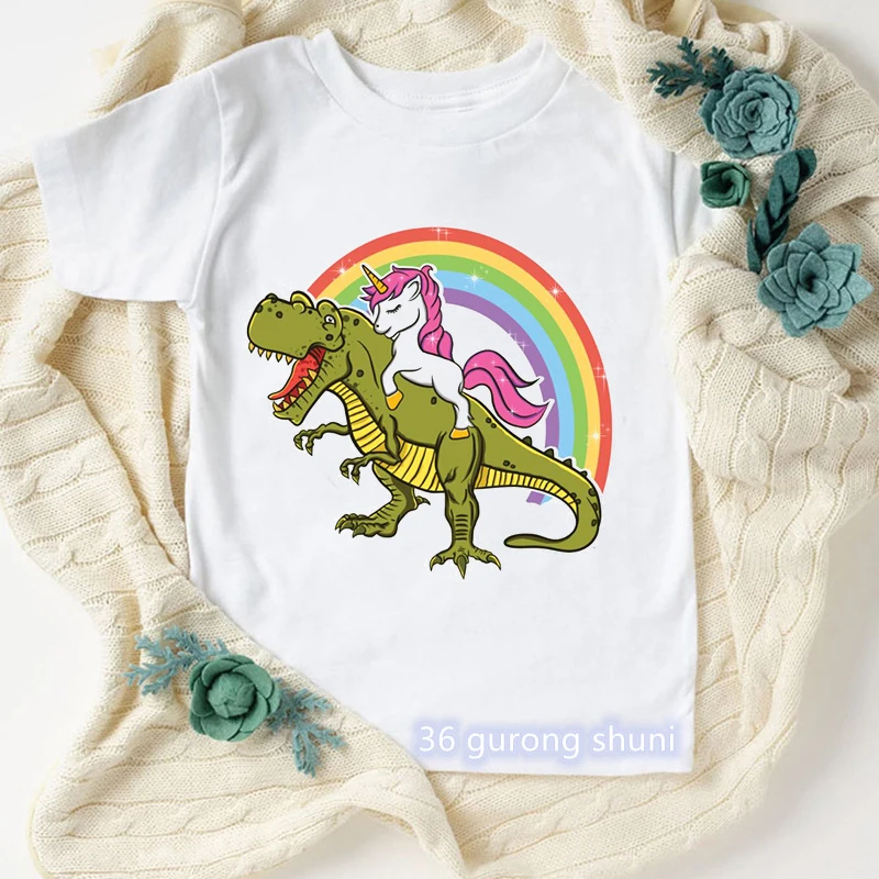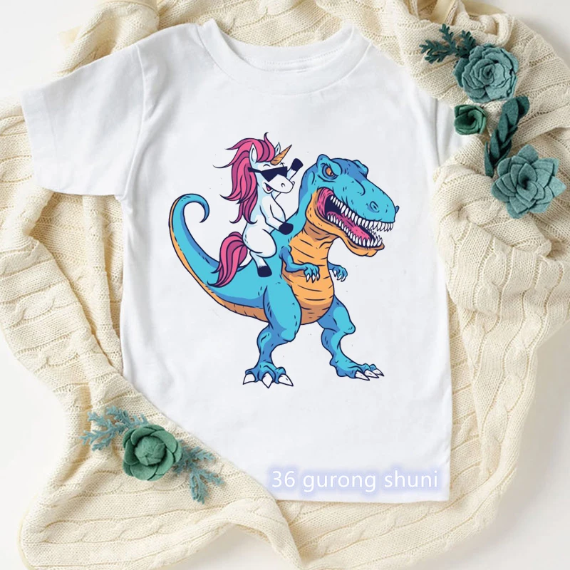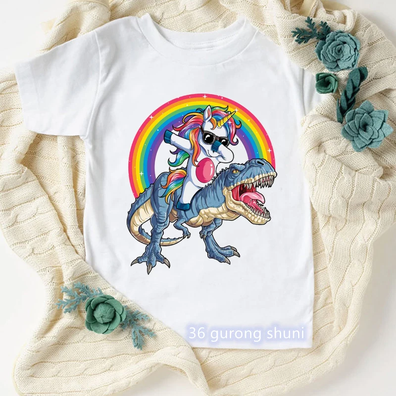 Футболка для мальчиков, забавный динозавр и радуга, единорог, Детская футболка с мультяшным принтом, летняя футболка в стиле хип-хоп для мальчиков, топы высокого качества