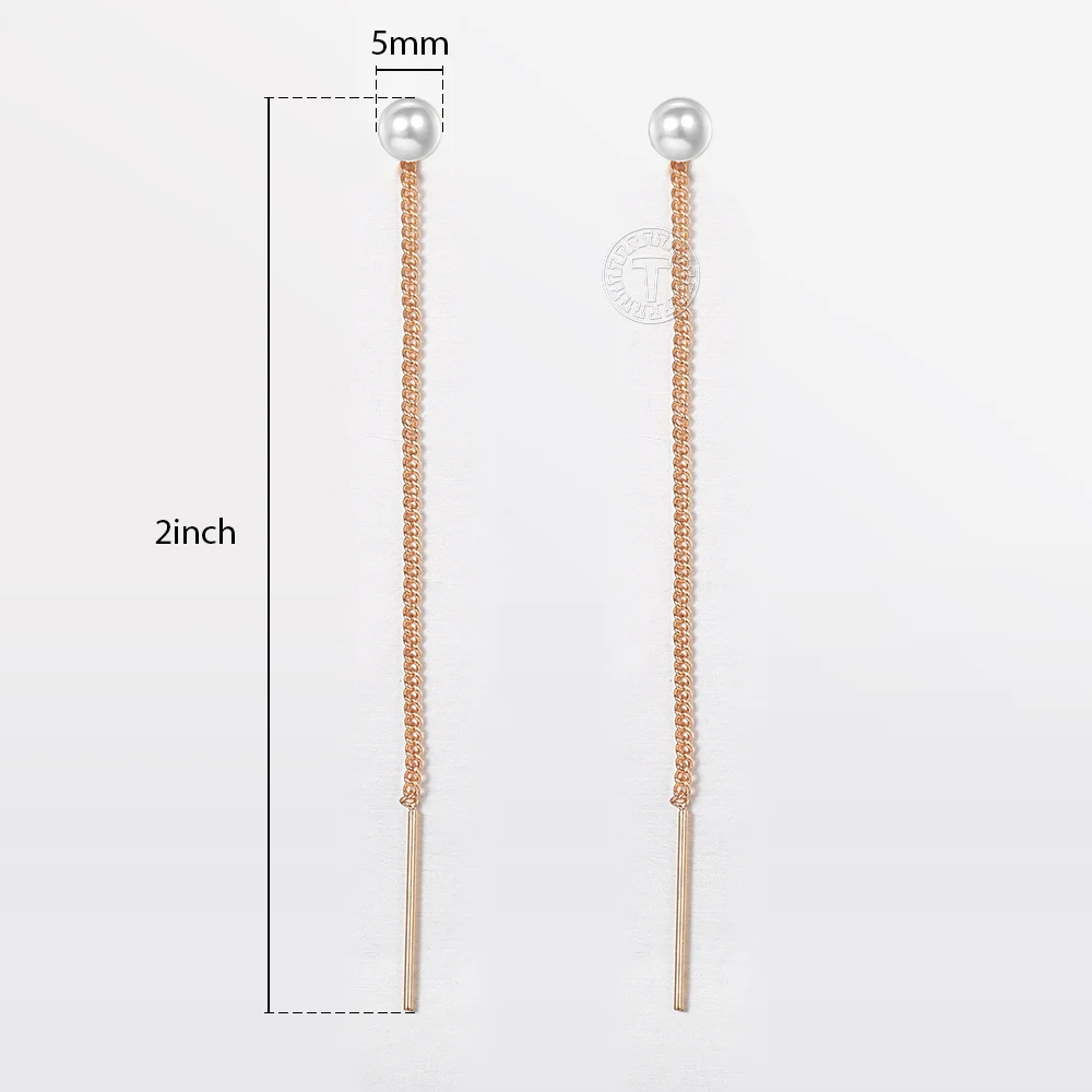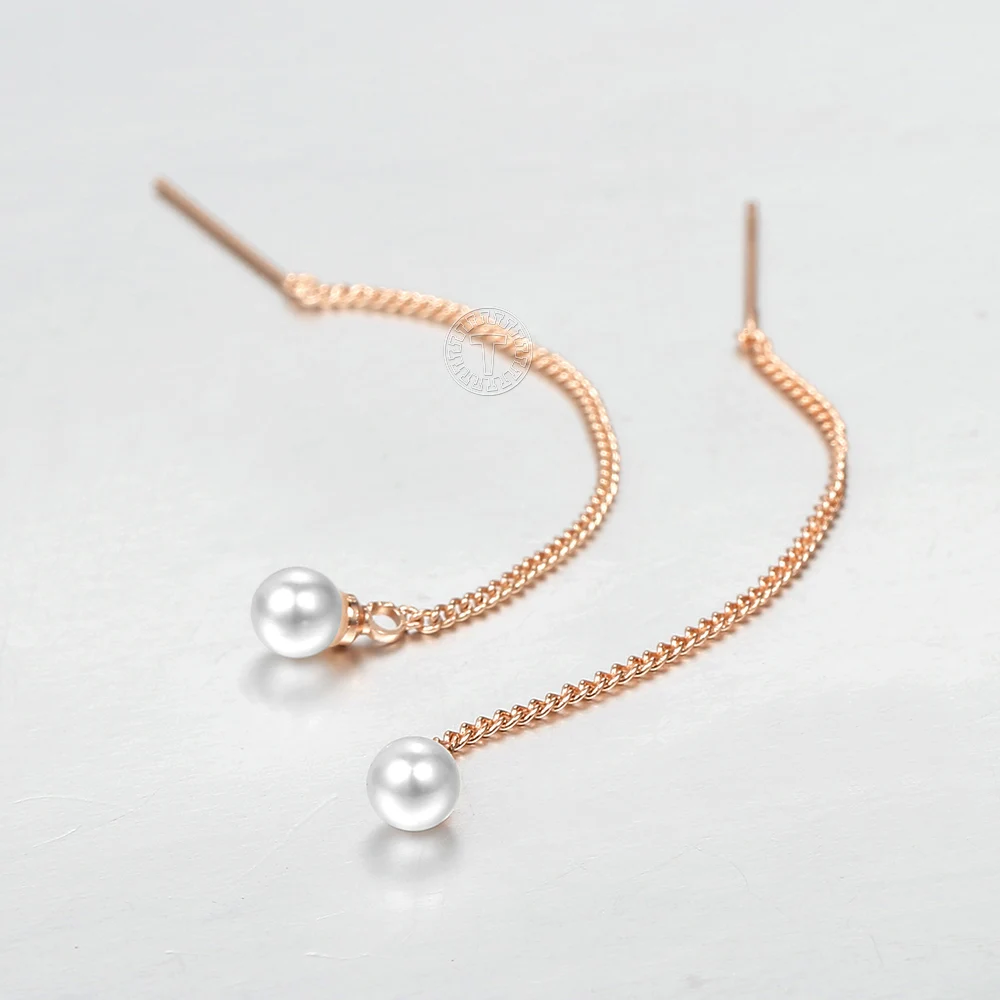 Женские длинные серьги-подвески с жемчугом, розовое золото 585 пробы, ювелирные украшения для свадьбы, помолвки, вечеринки, лучший подарок, HGE350