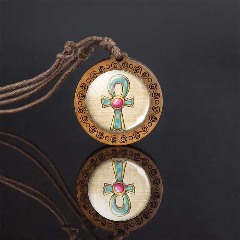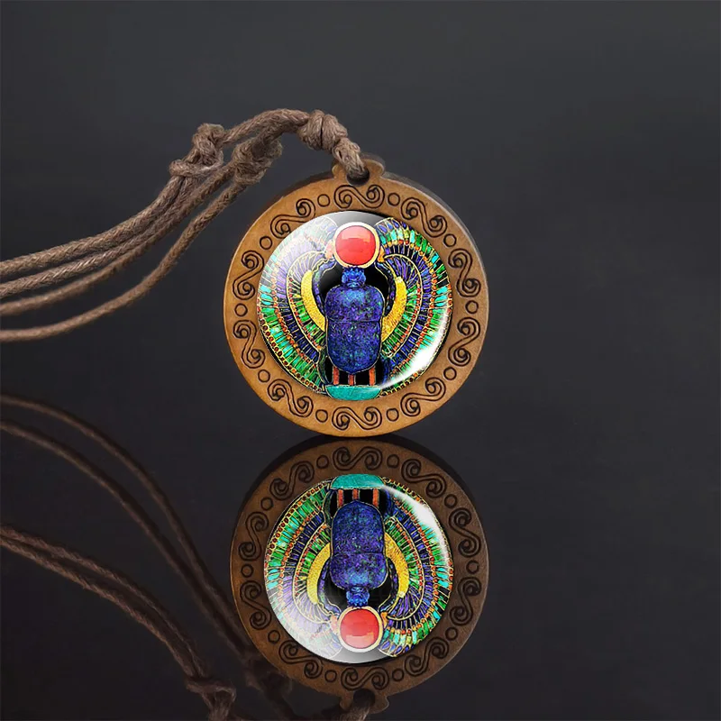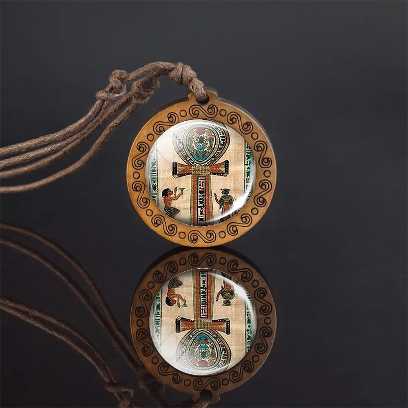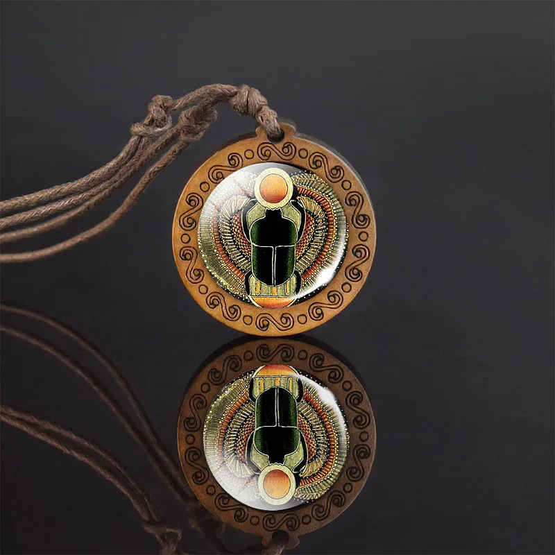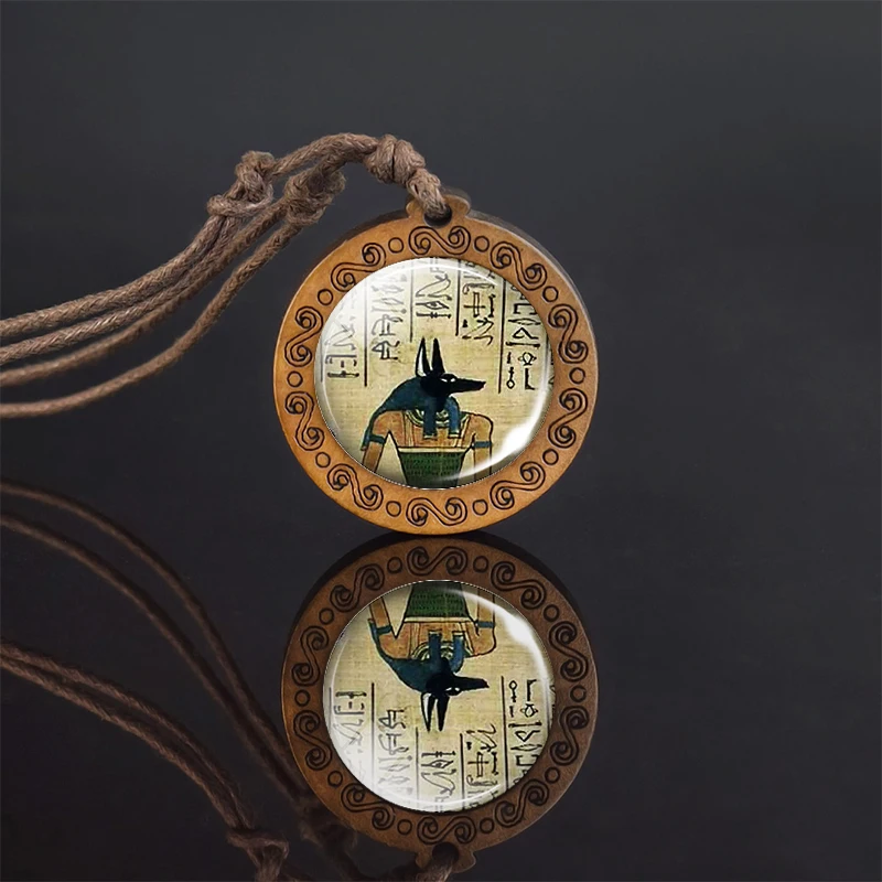 Древнего Египта, ожерелье-амулет в виде стеклянный купол деревянный кулон веревки Чиан Ожерелья Египет крест Анубиса Scarab Isis ювелирные изделия для богини