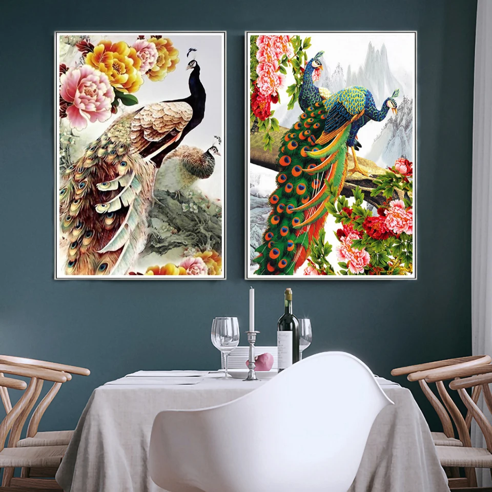Алмазная живопись 5d сделай сам, живопись с павлином, Набор для вышивки крестиком, 5d мозаика, картина стразы, вышивка, украшение для дома