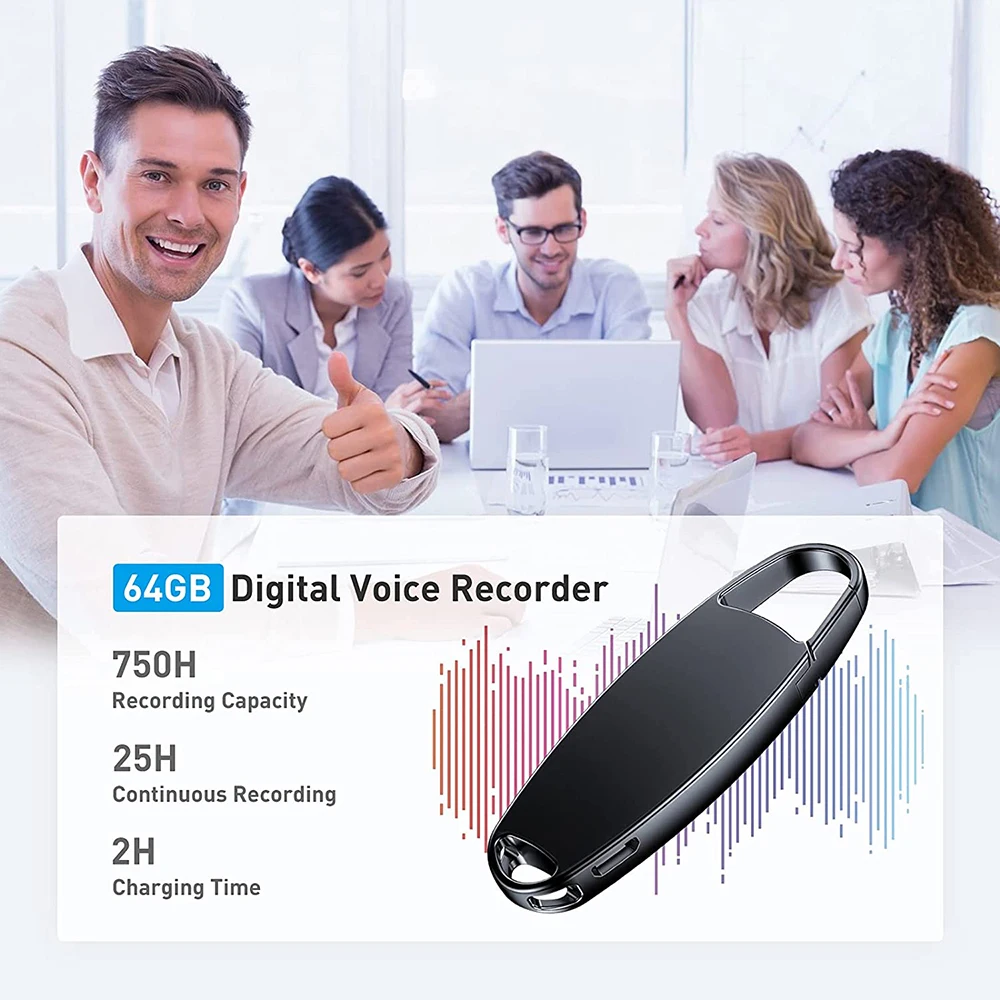 Цифровой диктофон, профессиональный мини-диктофон с функцией записи звука, Время работы батареи 25 часов, 16 ГБ, 64 ГБ, 128 ГБ, для занятий лекцией