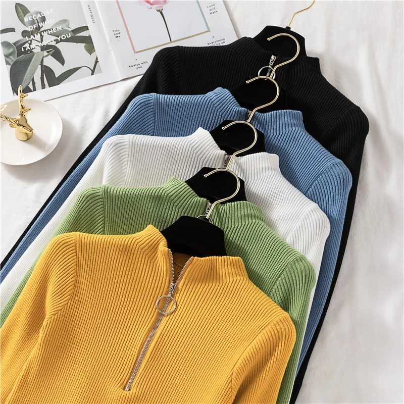 Женский свитер, водолазка на молнии, свитер с длинным рукавом, обле...