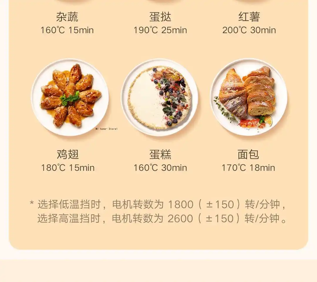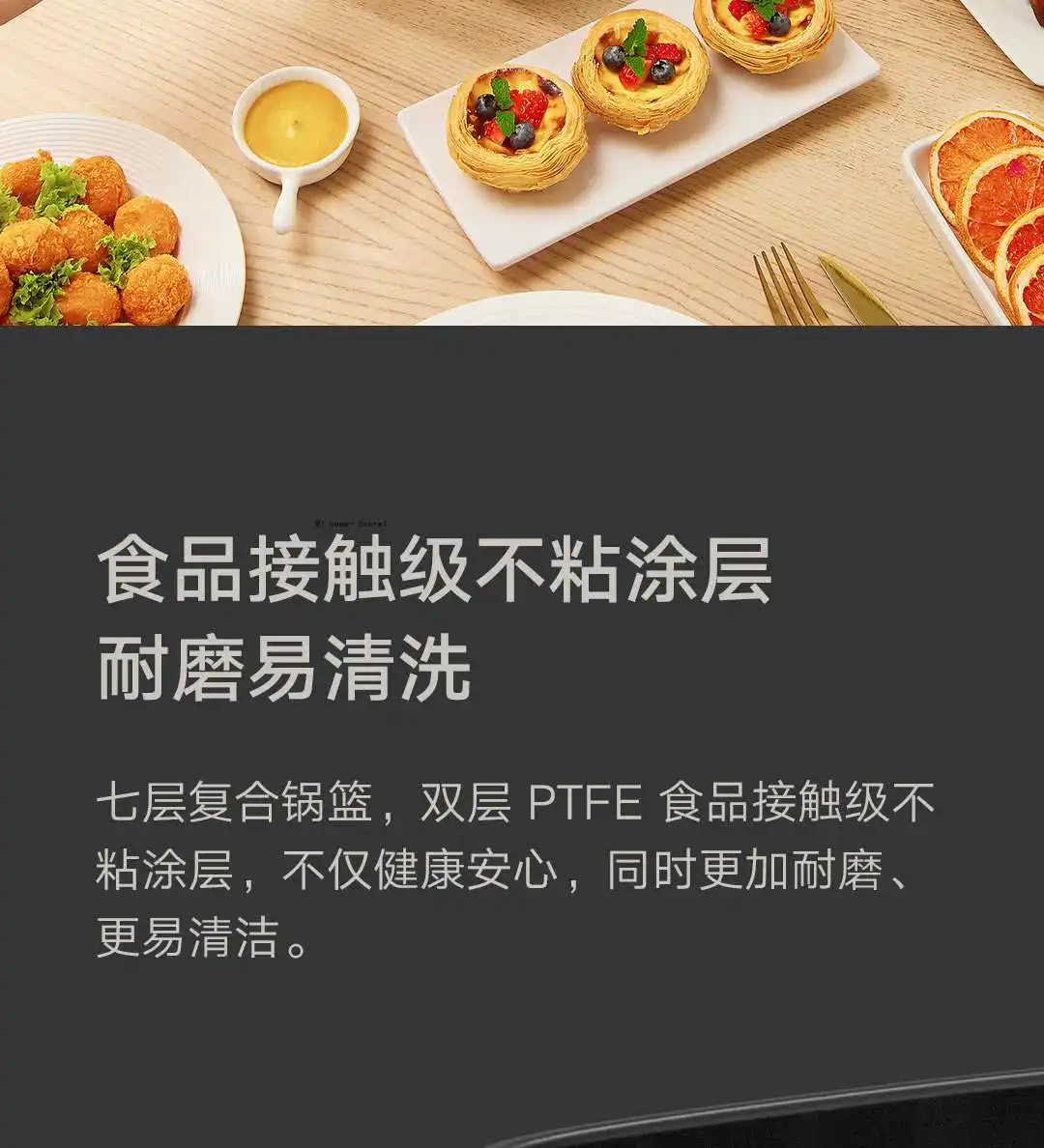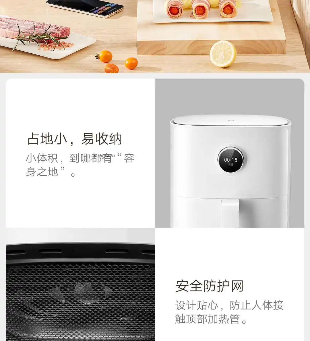 ● Воздушная фритюрница использует до 85% меньше жира, чем традиционная фритюрница, сохраняя такой же вкусный вкус, вы можете наслаждаться здоровой пищей с воздушной фритюрницей.● Вы можете подогреть устройство или разморозить еду одним нажатием или настроить температуру и время более точно, чтобы достичь наилучшего результата приготовления. С температурным диапазоном от 40 ℃ до 200 ℃, Mijia air фритюрница позволяет вам гриль, Выпекать, жарить и жарить книгу по вашему желанию.● Квадратная дизайнерская корзина размером 3,5л обеспечивает большую производительность для приготовления пищи, чем круглая корзина, которая подходит для всей курицы. С антипригарной безопасной для посудомоечной машины корзиной, очистка не хлопот.● Он был подключен к приложению Mijia с более чем 50 видами предустановленных рецептов, включая стейк, птицу, морепродукты, креветки, бекон, замороженные продукты, картофель фри, овощи, корневые овощи, хлеб и десерты, которые могут удовлетворить ваши различные потребности.