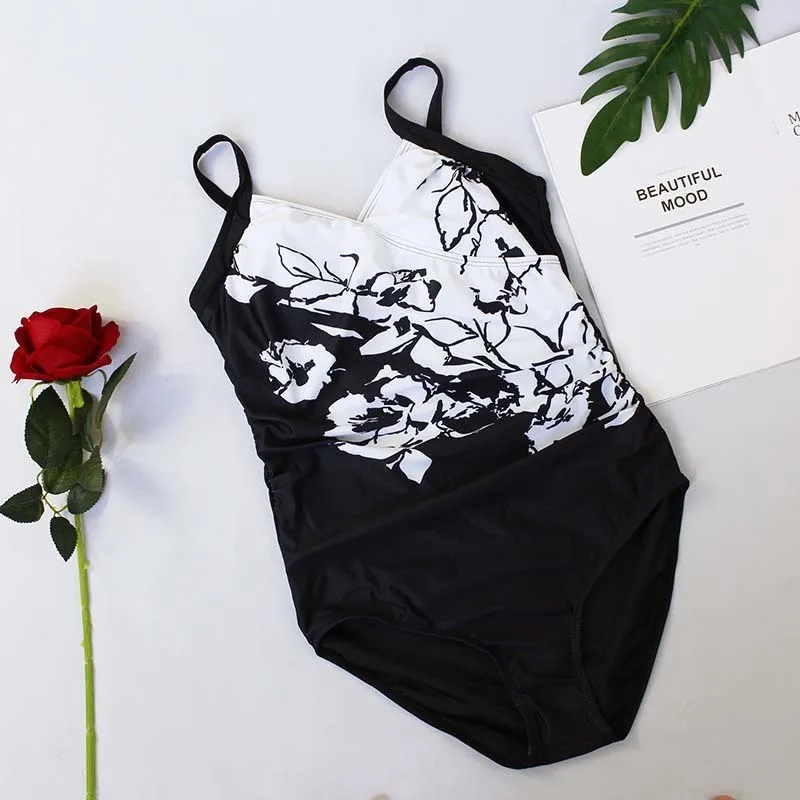 Цветочные цельные купальники большого размера, закрытые размера плю...