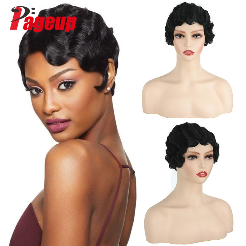 PAGEUP Короткие вьющиеся черные милые парики с черными пальцами волнистые африканские афро волосы синтетические парики для черных женщин термостойкие