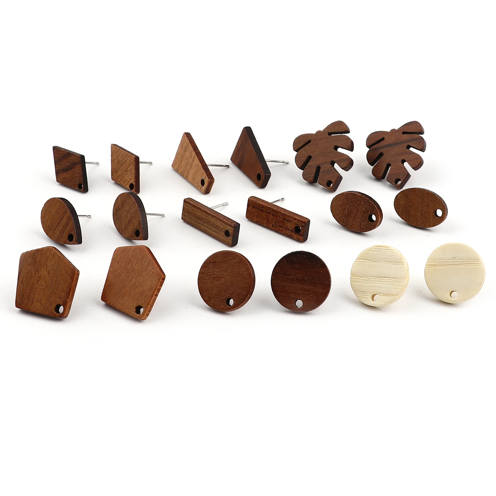 Деревянные серьги-гвоздики из цинкового сплава в стиле ретро для женщин, 0,7 мм, бежевыекоричневые листьягеометрические серьги сделай сам, аксессуары для изготовления ювелирных изделий, 10 шт.компл.