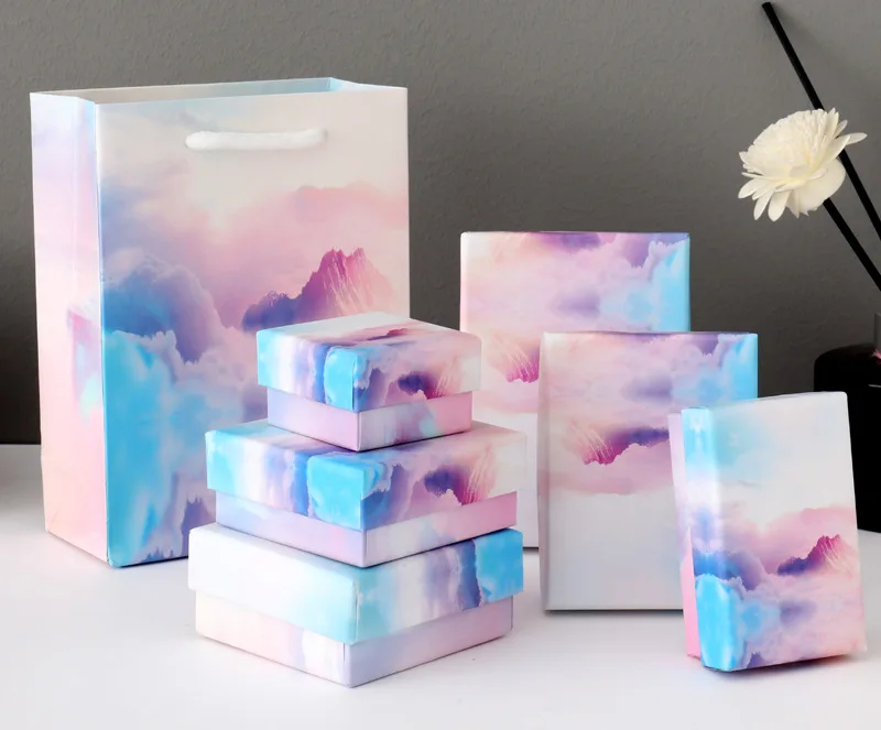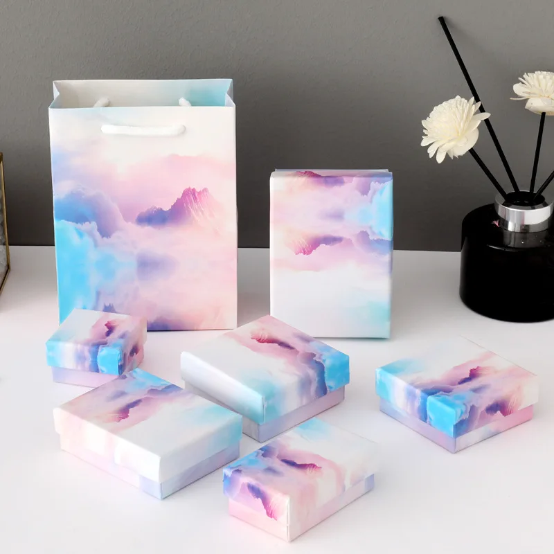 Шкатулка для ювелирных изделий с небольшим градиентным облаком, подарочная упаковка, бумажный чехол, Подарочная коробка для хранения колец, сережек, подвесок, с дисплеем разных размеров, 1 шт.