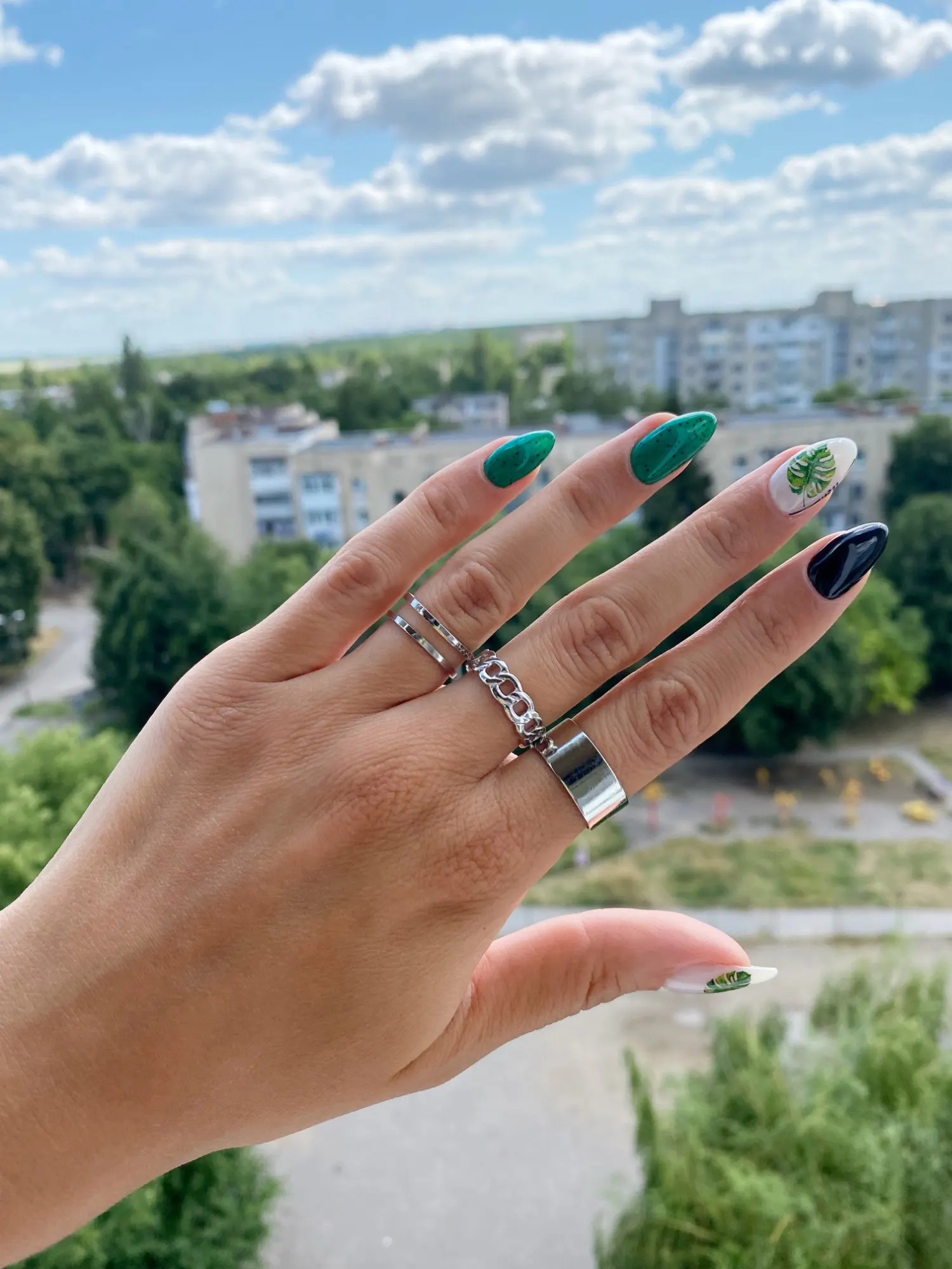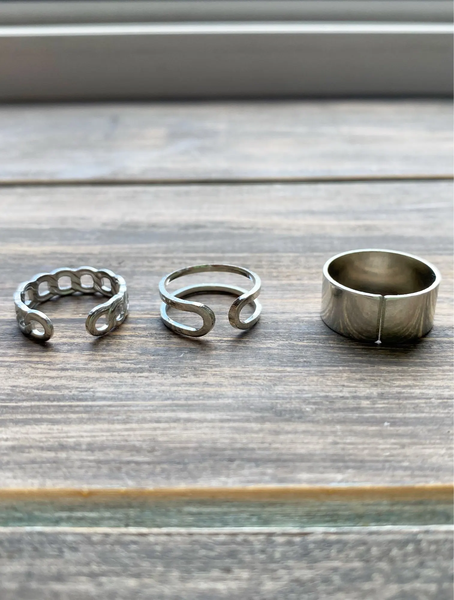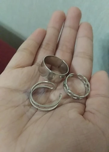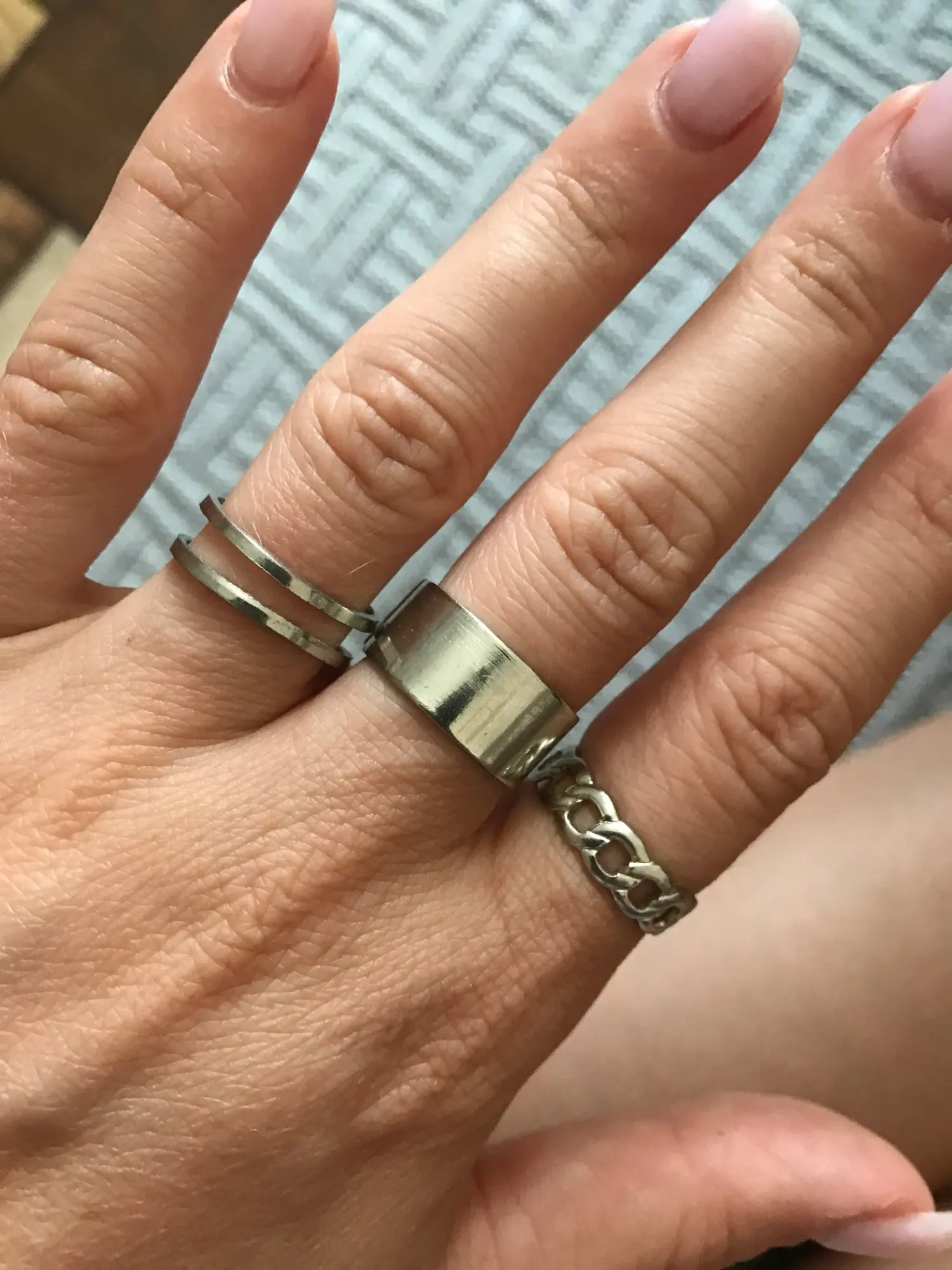 Набор состоит из трёх стильных колечек, которые носить можно по разному, комбинируя между собой. Регулируемый размер позволяет надевать на любой мальчик, что очень удобно. Качество нормально , на широком кольце есть царапина , но за такую цену это простительно, в глаза сильно не бросается.