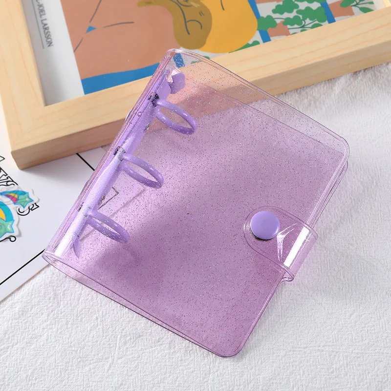 Мини-Обложка для блокнота с 3 отверстиями, чехол из ПВХ для ежедневника, прозрачная Мерцающая Ручная книжка, внутренняя страница, искусственная книга