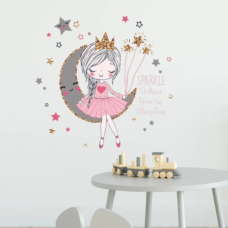 Луна принцесса девушка наклейки на стену для девочек комната спальня фон Декор съемные Мультяшные наклейки на стену для украшения детских комнат