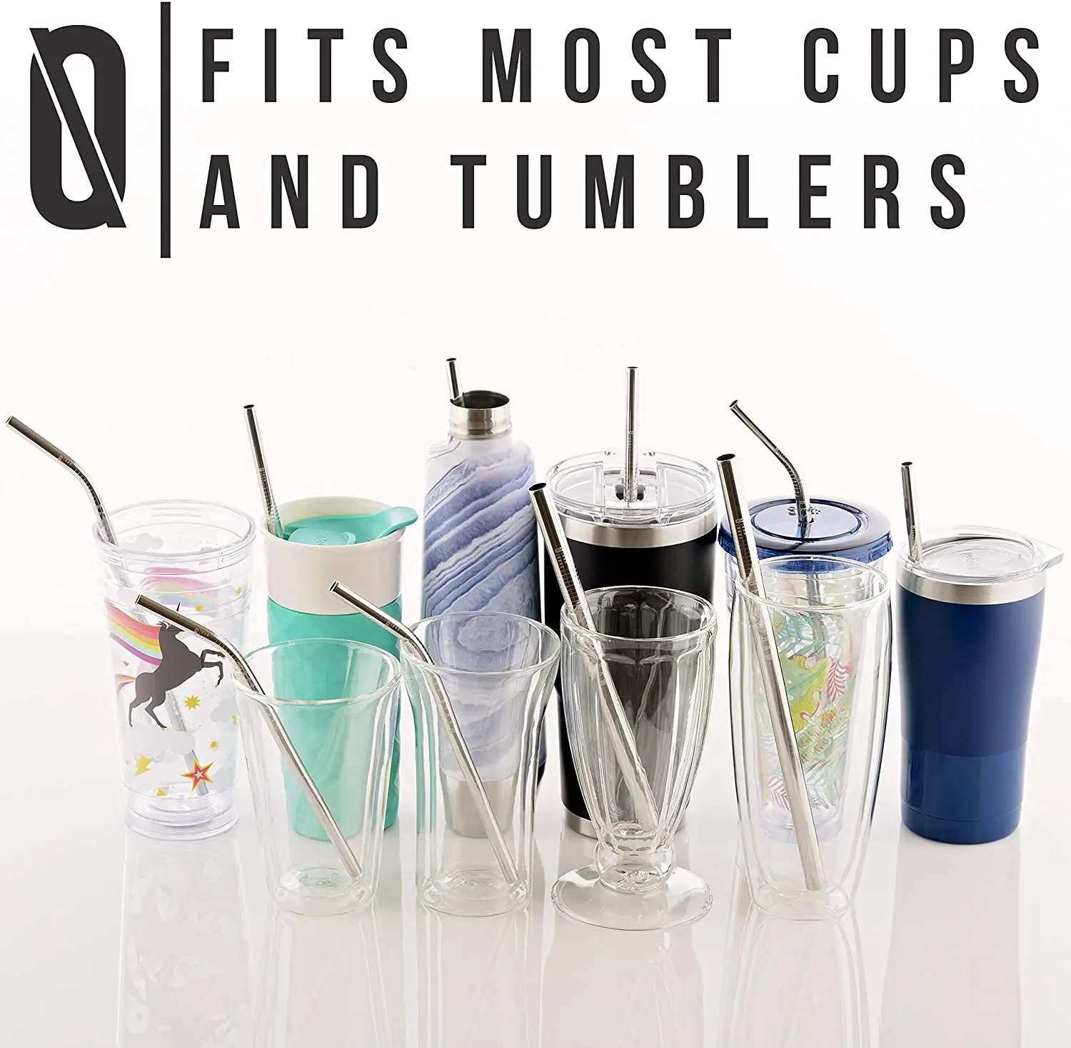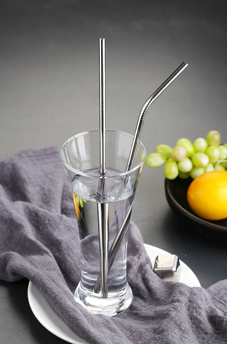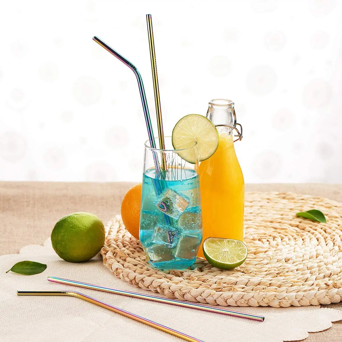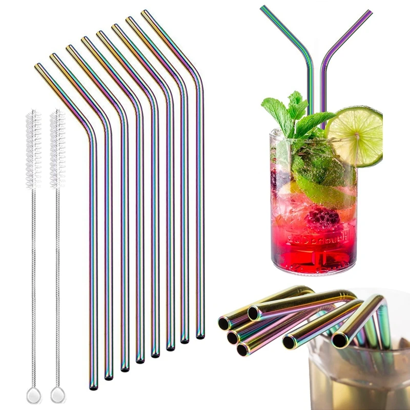 Многоразовая соломинка для питья, 8 шт., металлическая соломинка 304, нержавеющая сталь набор соломинок, прямая, изогнутая, экологически чистый стакан для напитков соломинки