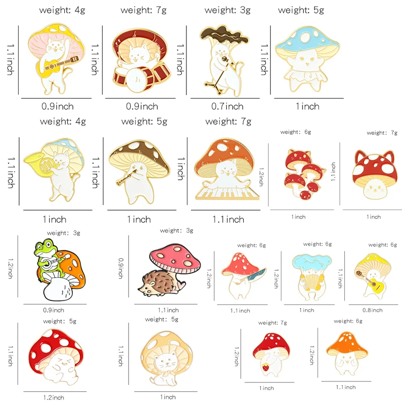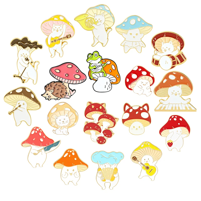Броши с эмалью в виде животных, коллекция милых грибов, забавные, играть и петь, певец, нагрудные, Мультяшные ювелирные изделия, подарок для ребенка
