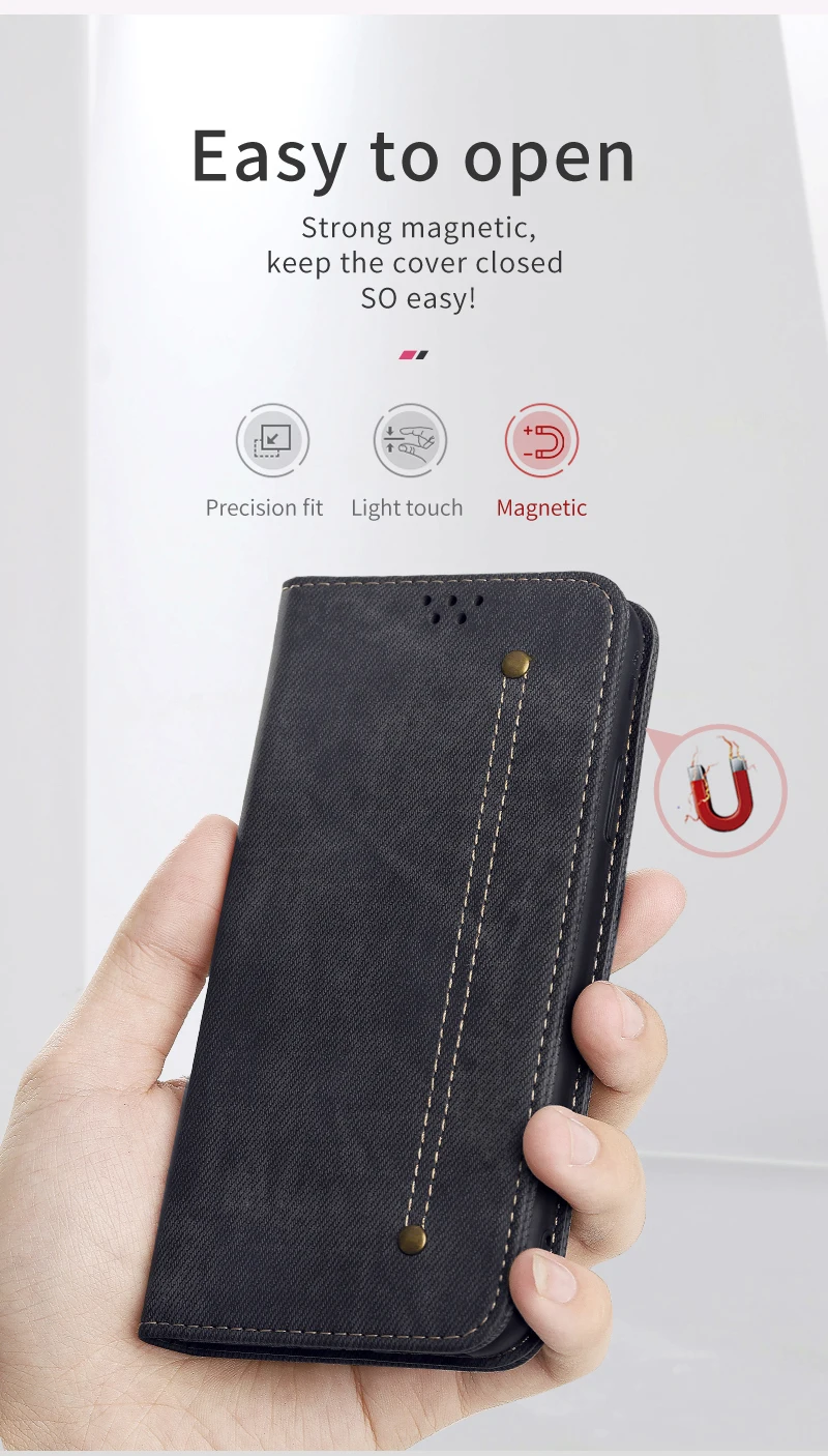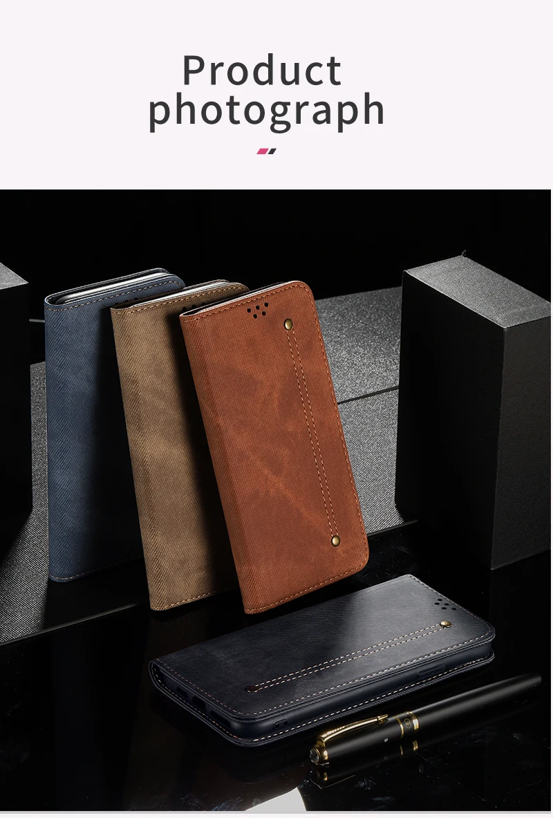 Кожаный чехол-бумажник из денима для Xiaomi Redmi Note 9 8 7 Pro 9s...