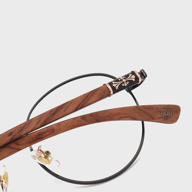 Очки HDCRAFTER в металлической оправе с деревянными дужками для муж...