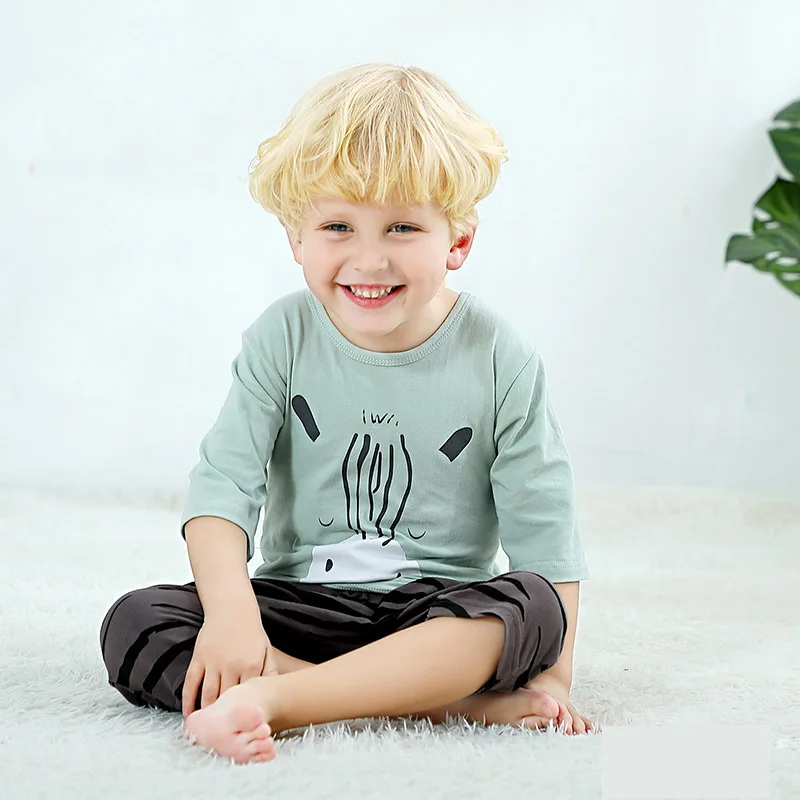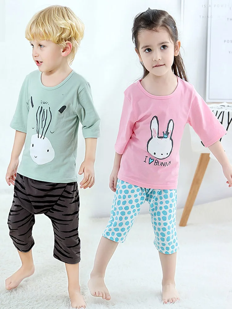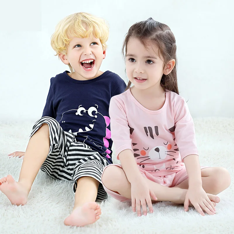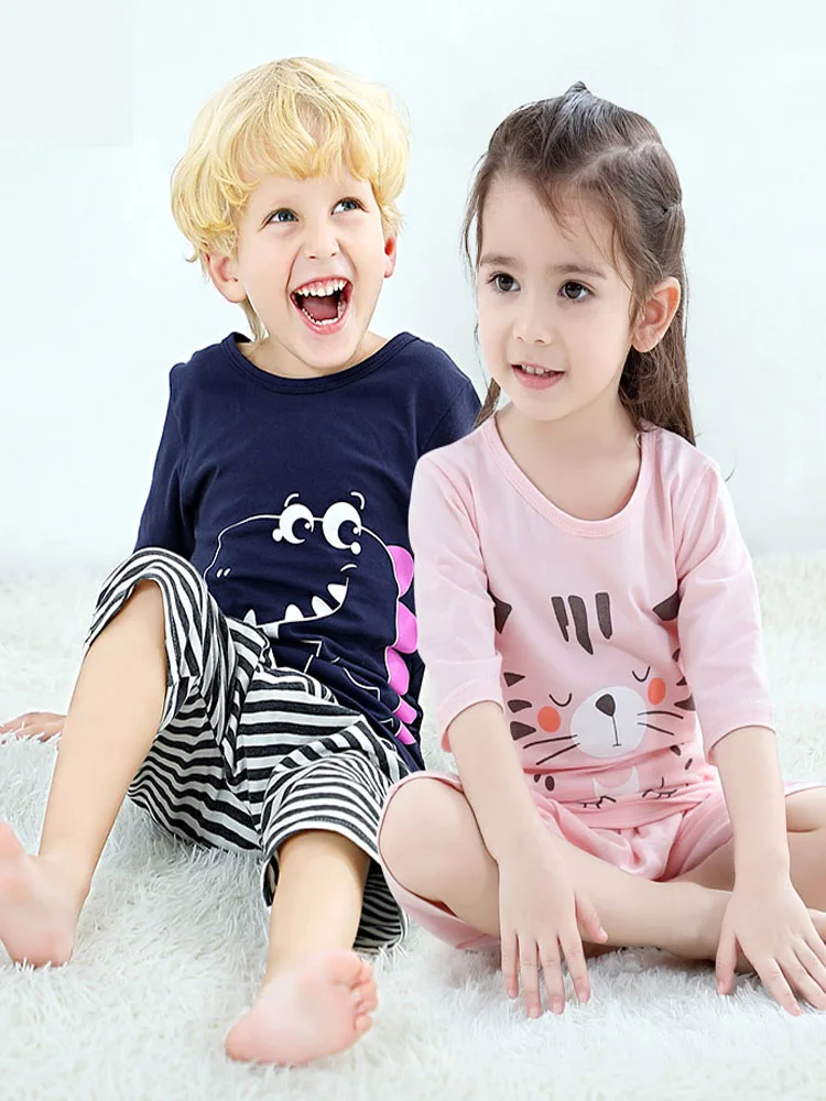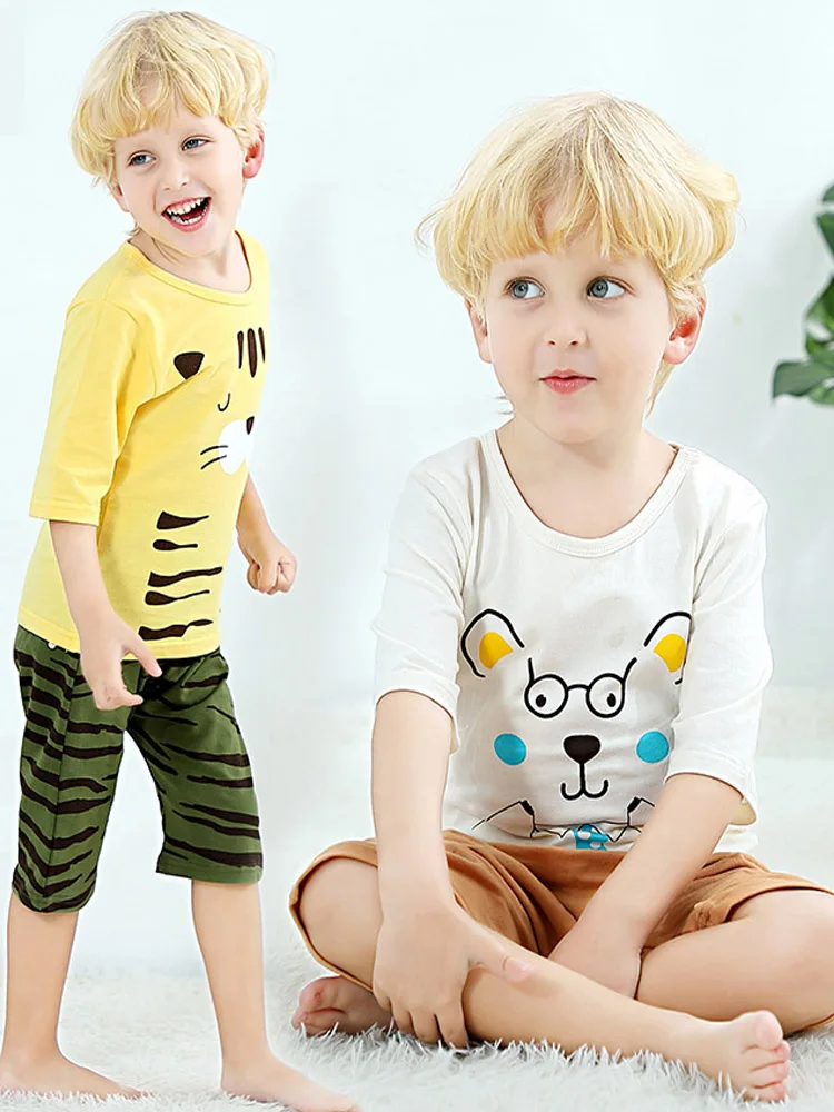 Летние Мультяшные пижамные комплекты для маленьких мальчиков и девочек Детские костюмы хлопковые Пижамные комплекты для малышей мальчиков детская одежда