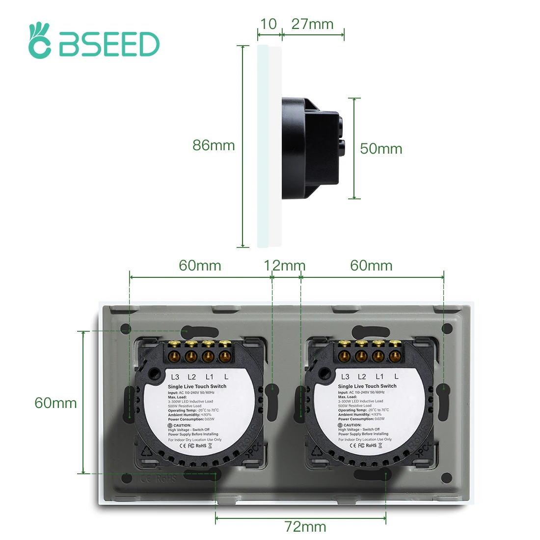 Bseed 2Gang 1Way настенный сенсорный переключатель двойной 1Gang св...