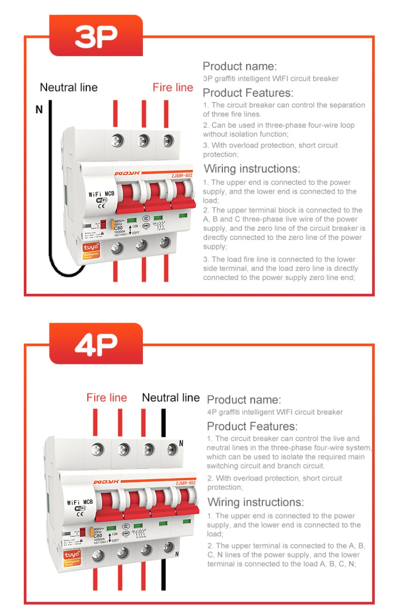 2021 Новый 1P-4P WI-FI Мини автомат защити цепи IoT переключатель 16A20A25A32A80A125A, приложение TUYA дистанционного Управление с Alexa Google Home