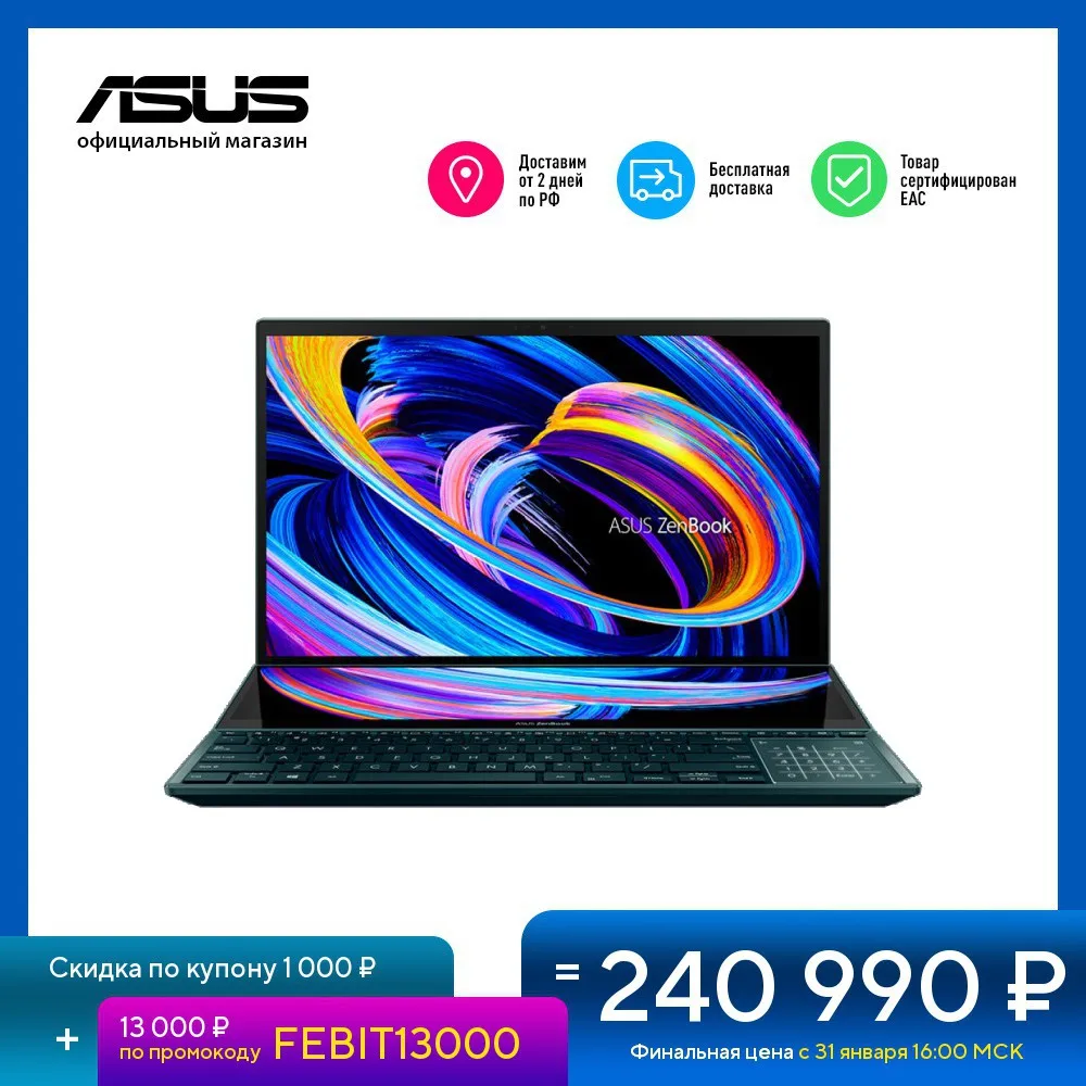 Ноутбук ASUS ZenBook Pro Duo 15 OLED UX582LR-H2004T 15.6' 4K UHDCore i7-10870H16Gb 1Tb SSDRTX 3070 для ноутбуков
