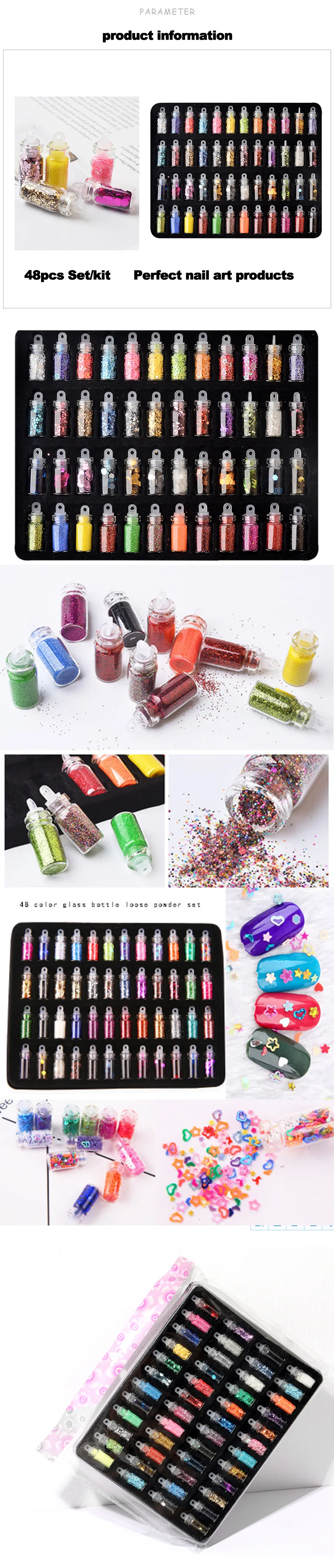 Набор для маникюра, блестящая пудра, декоративные наклейки для ногтей, чехол, 2021, 48 бутылокнабор, блестки для нейл Арта (искусство украшения ногтей)