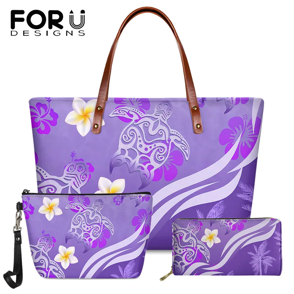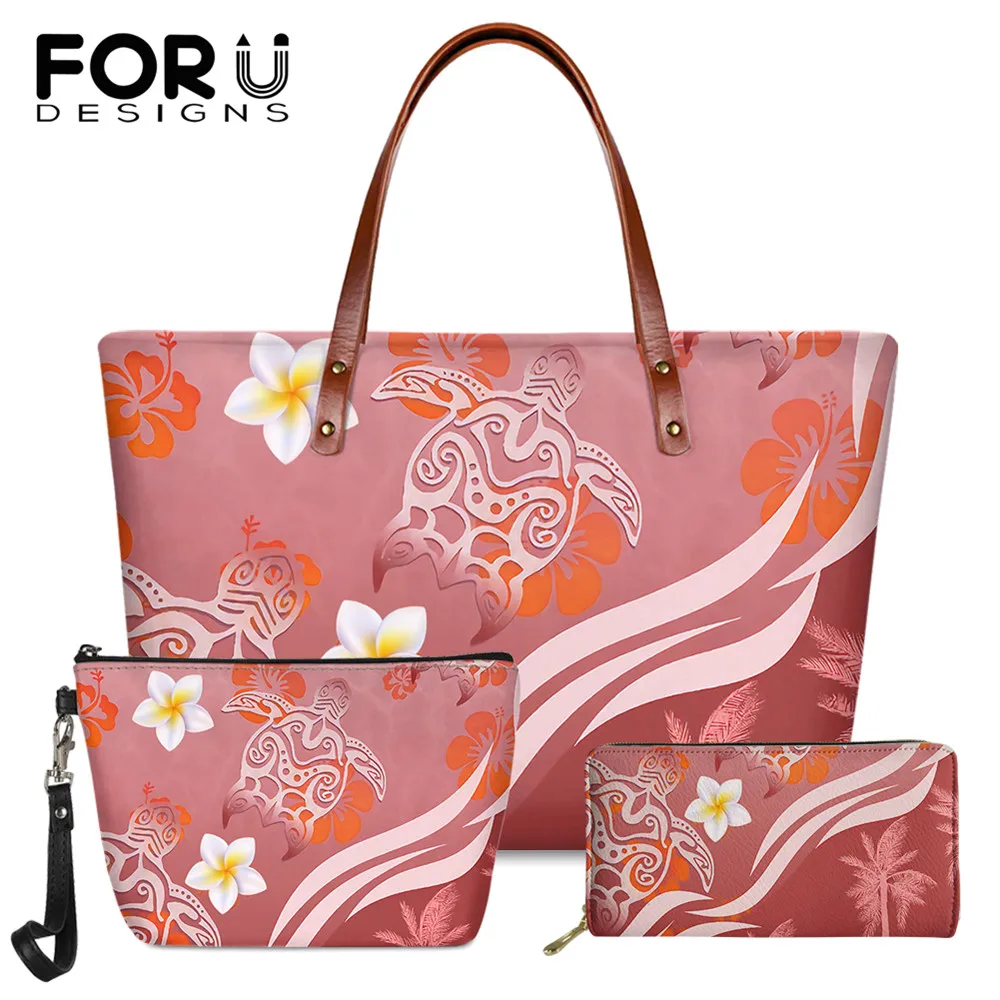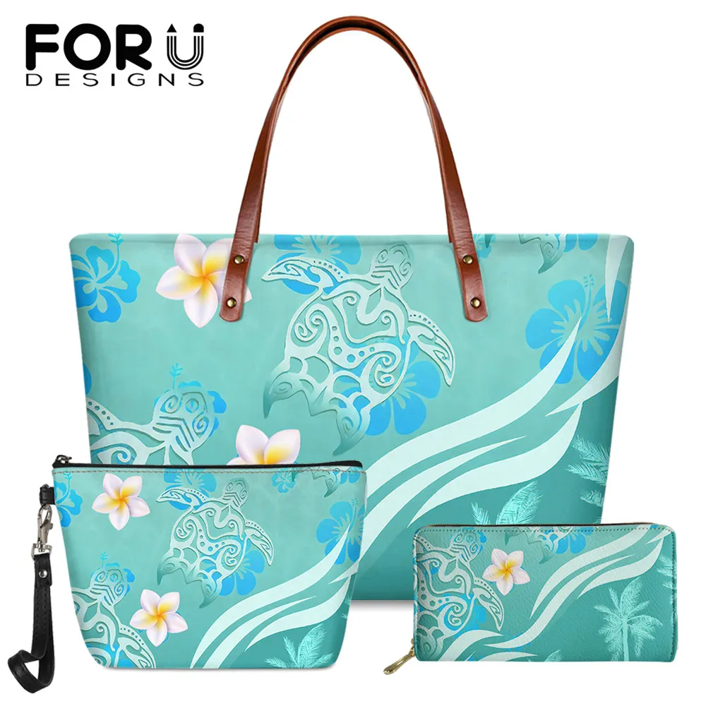FORUDESIGNS Гавайская морская черепаха и Плюмерия с цветочным принтом женские большие сумки и кошельки Capcity 3 шт. Женские повседневные клатчи