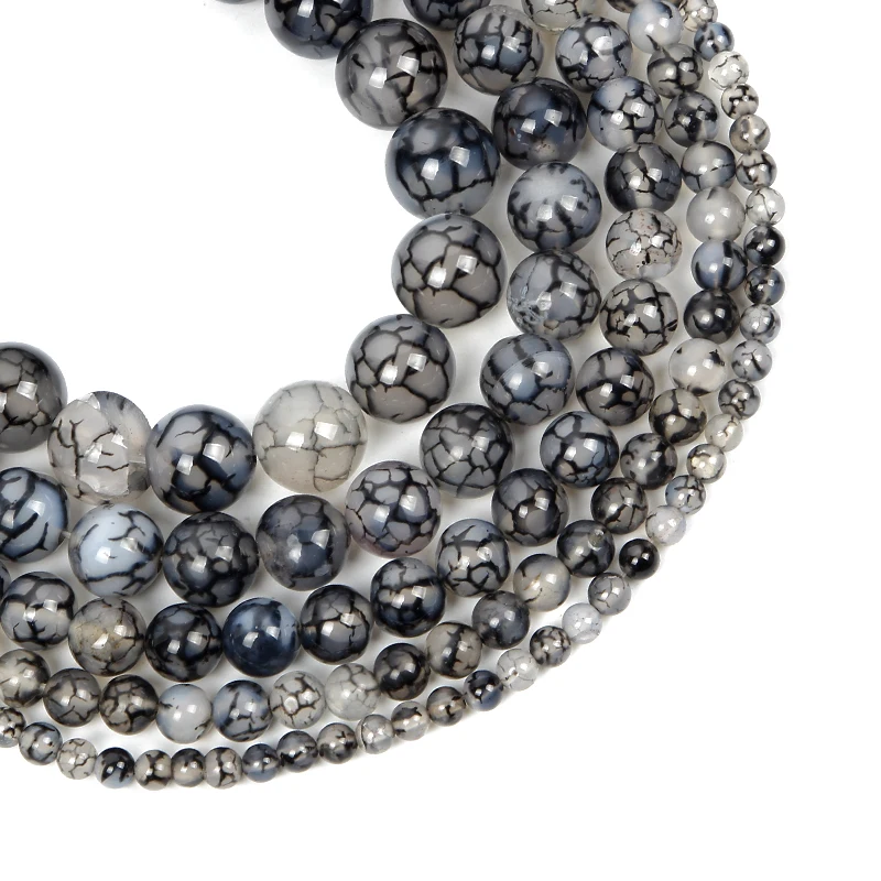 Бусины из натурального камня с узором черного дракона, незакрепленные бусины для изготовления ювелирных изделий, рукоделия, браслетов, нитка 4-12 мм
