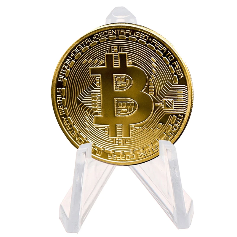 Сувенир позолоченный Биткоин коллекционный подарок художественная коллекция физическая памятная фотография подставка чехол коробка