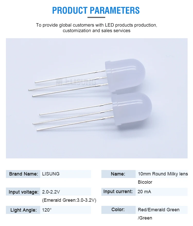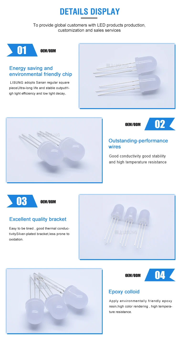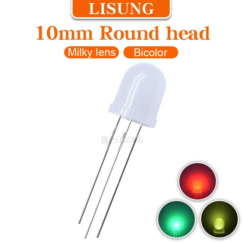 Светодиодные круглые диффузные молочные линзы 250, шт.пакет, цветной диод, 10 мм, двухцветные, универсальный анодный катод, желтый, красный, зеленый, два-показателя