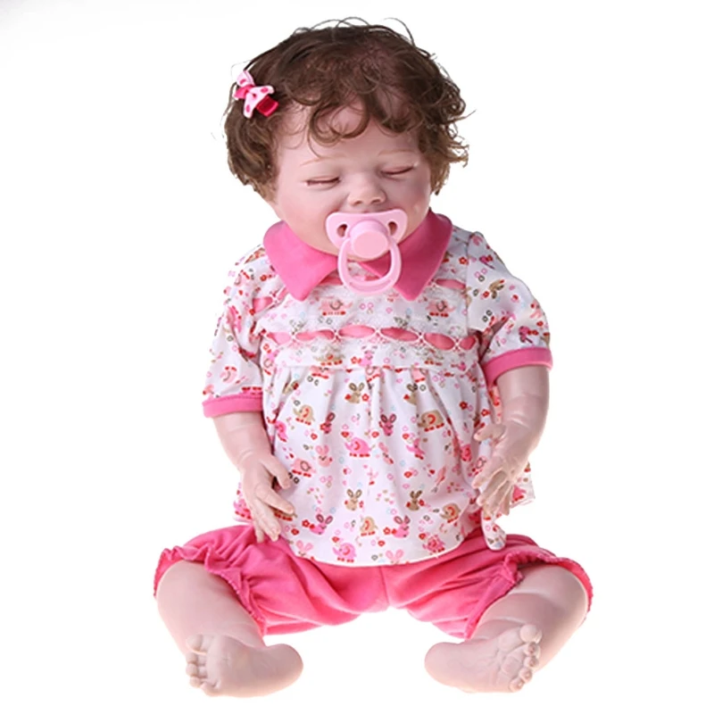 46 см розовый костюм куклы силиконовые реалистичные глаза-закрытые мягкого силикона; Ложатся новорожденная кукла для мальчиков и девочек игрушка в подарок для малышей
